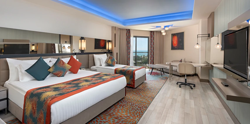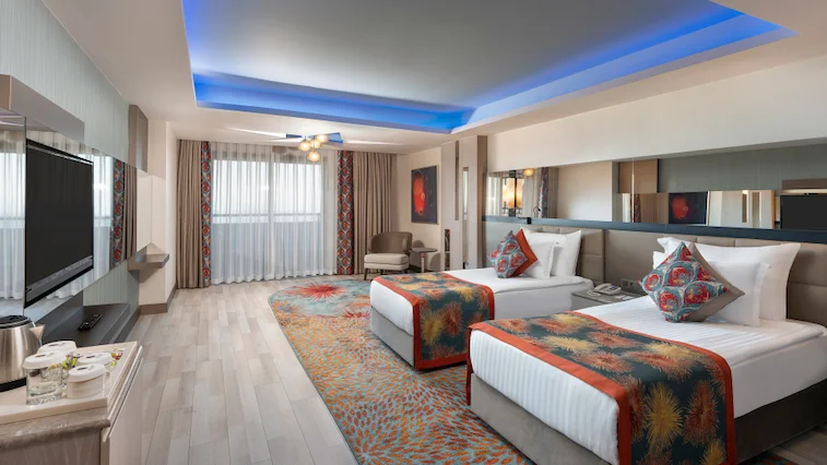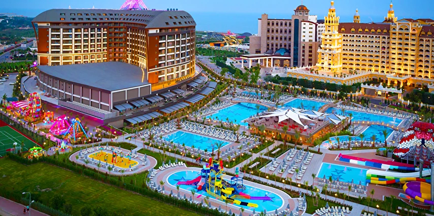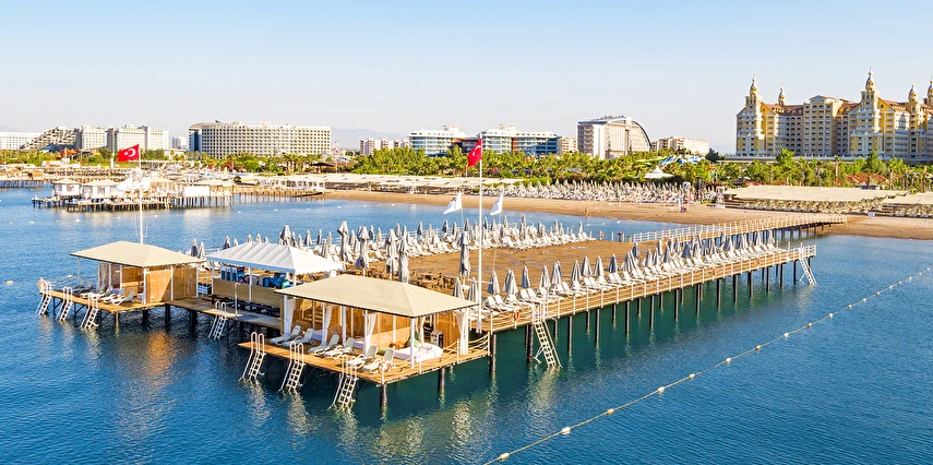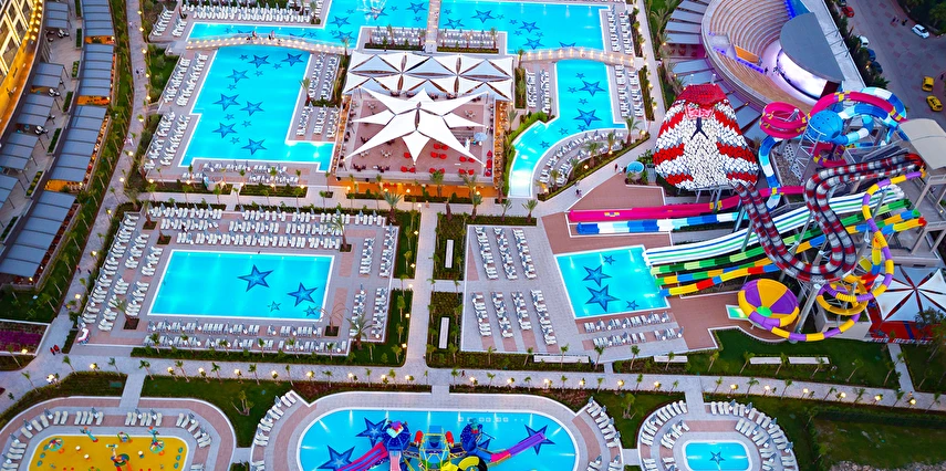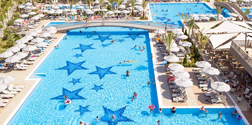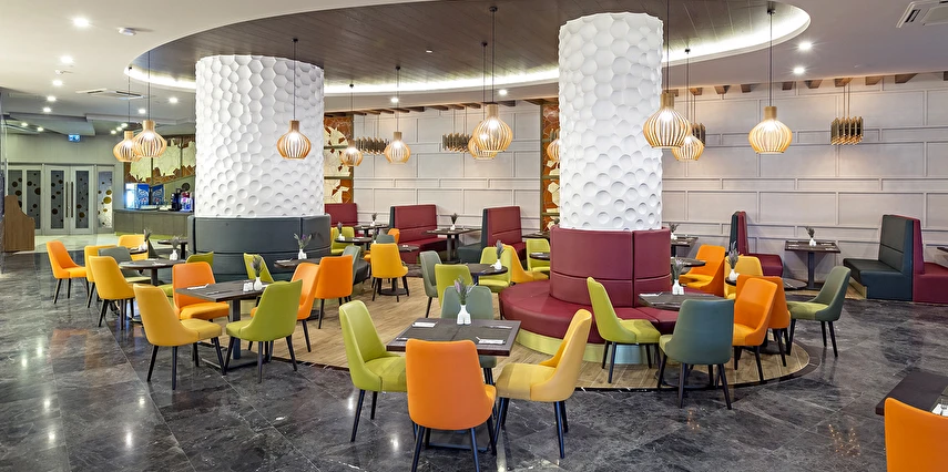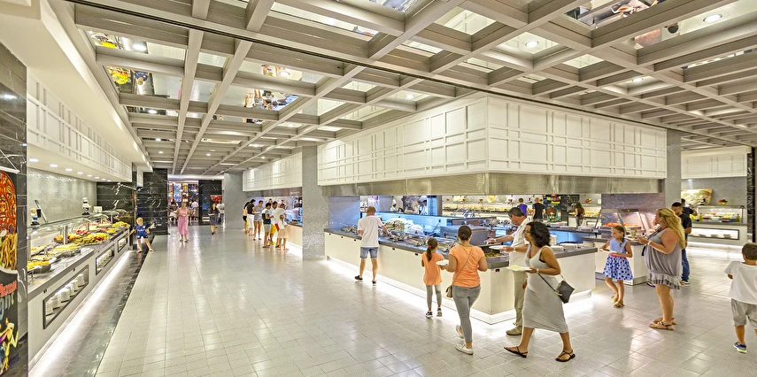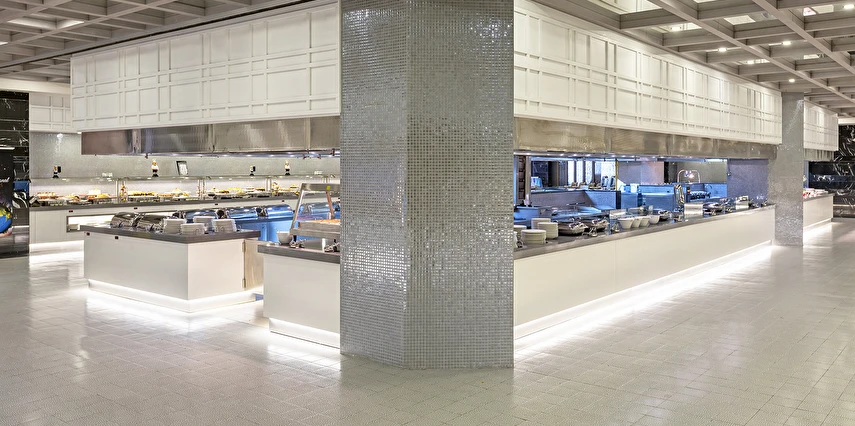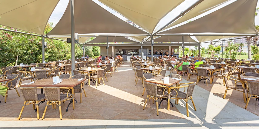 Sabah kahvaltısı öğle ve akşam yemekleri açık büfe olup tesisin belirlemiş olduğu markalar dahilinde barların servis verdiği saatler arasında yerli alkollü alkolsüz içecekler ücretsizdir. Tüm içecekler garsonlar tarafından masaya servis edilir (kahvaltı hariç ). Tüm restoran ve barlarda içki/içecek servisi kadehle yapılmaktadır. Şişede yapılan servisler ücretlidir. Bazı yerli ve ithal alkollü-alkolsüz içkiler, ögle ve akşam yemeklerinde yerli ve bazı ithal alkollü-alkolsüz içecekler ücretsizdir. Öğle ve akşam yemeklerinde yerli ve bazı ithal alkollü-alkolsüz içecekler ücretsizdir.