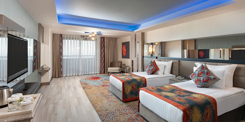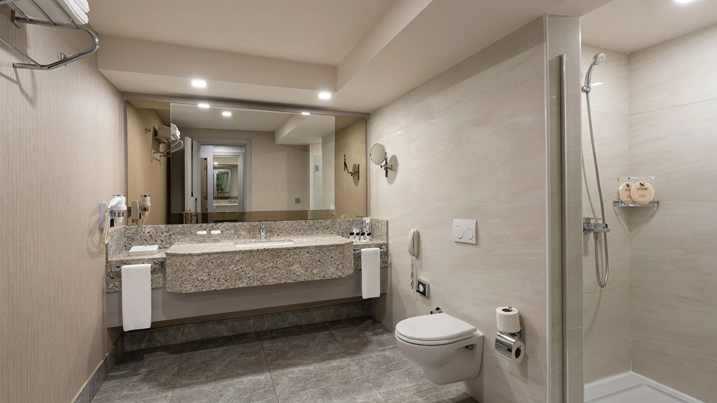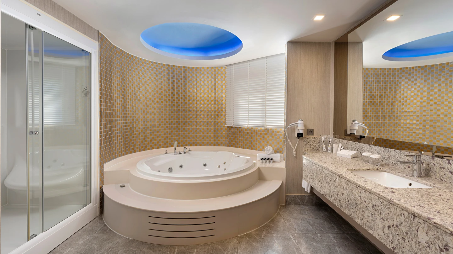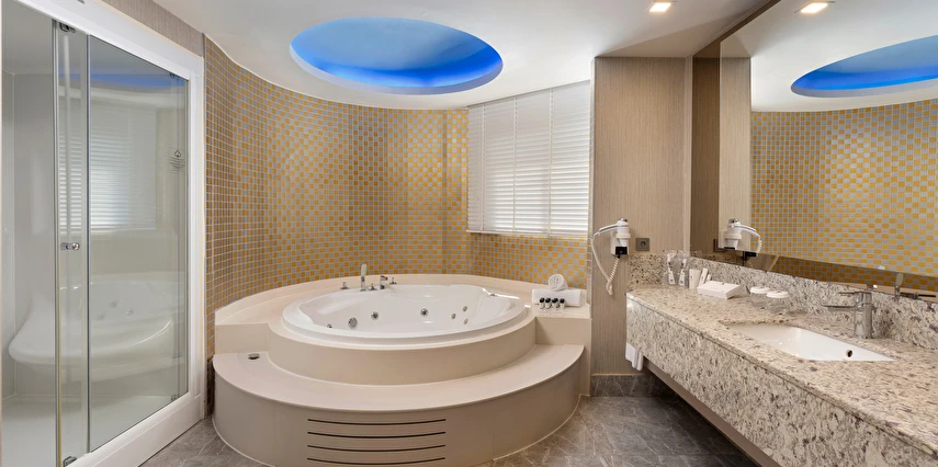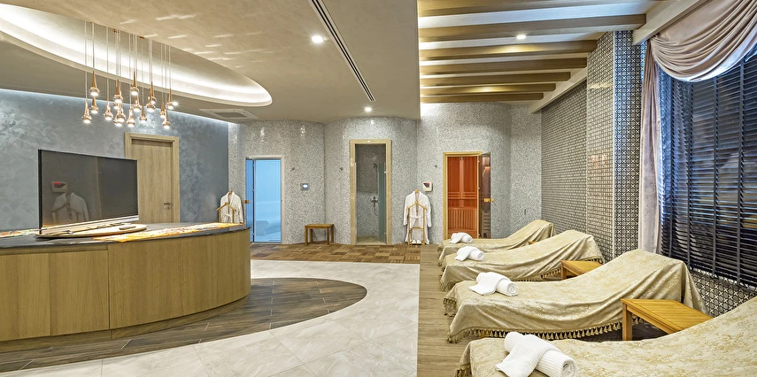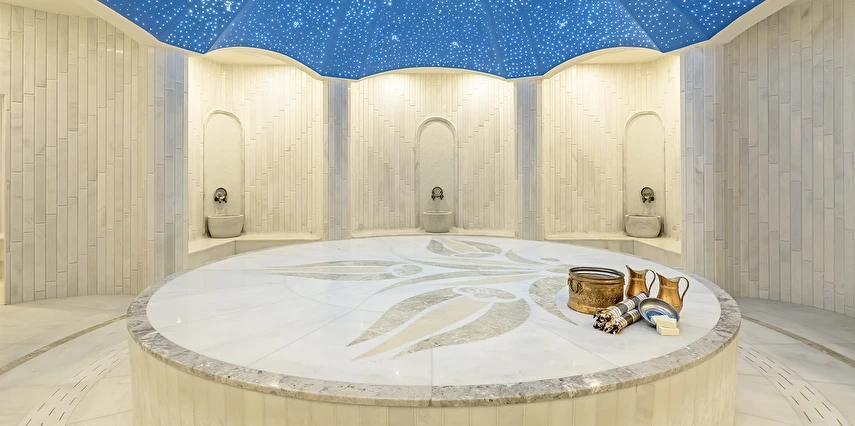 Spa & Wellness: Türk Hamamı, Buhar odası ve Sauna kullanımı 12 yaş altı için uygun değildir. Sauna, Türk hamamı (Hamamda alınan bakımlar hariç), Buhar odası-Dinlenme odası, hizmetleri ücretsiz, hizmetler ve saatleri sezon içerisinde otel tarafından operasyon ve tedarik edebilme durumu doğrultusunda değişebilir.