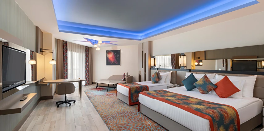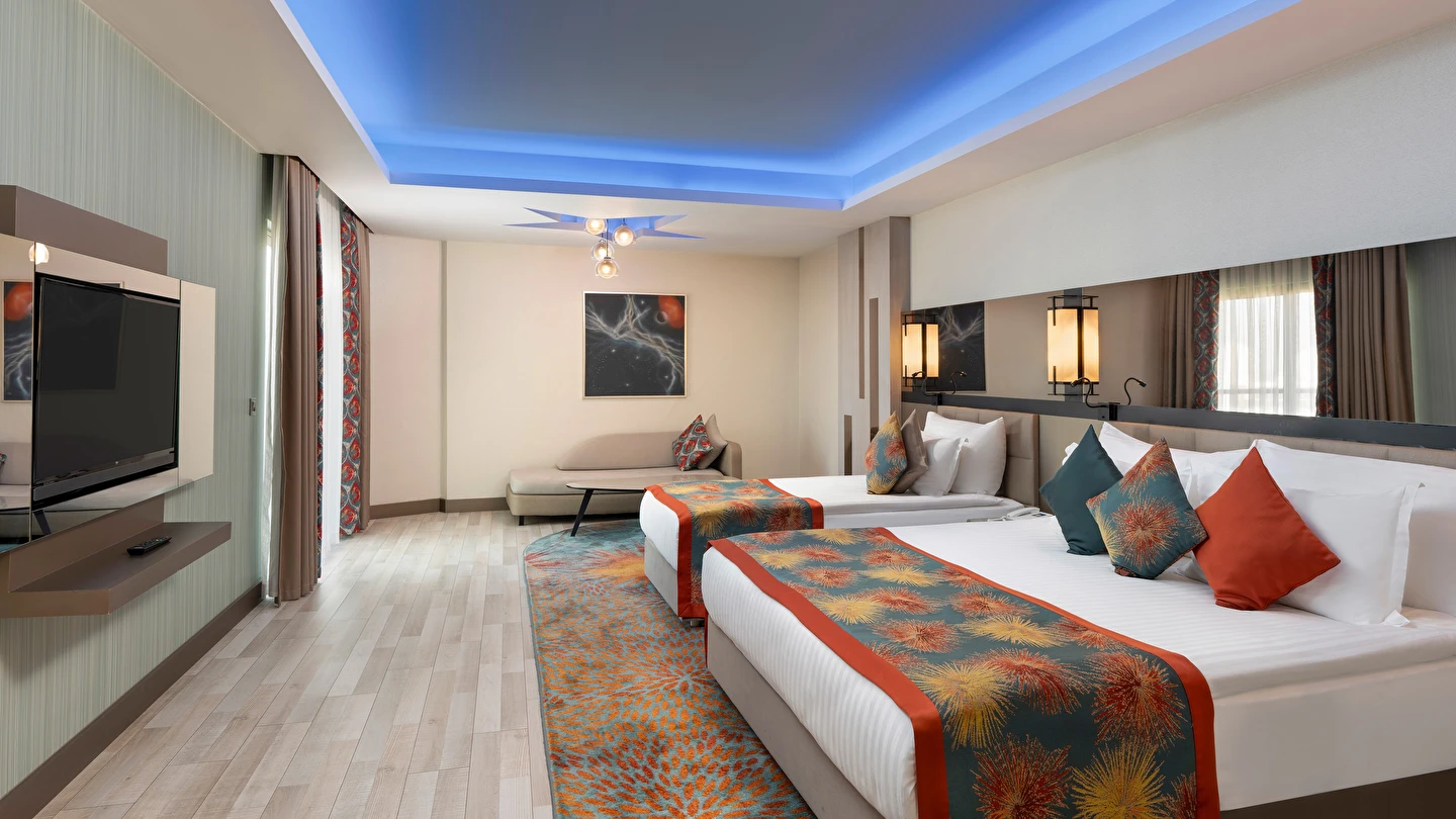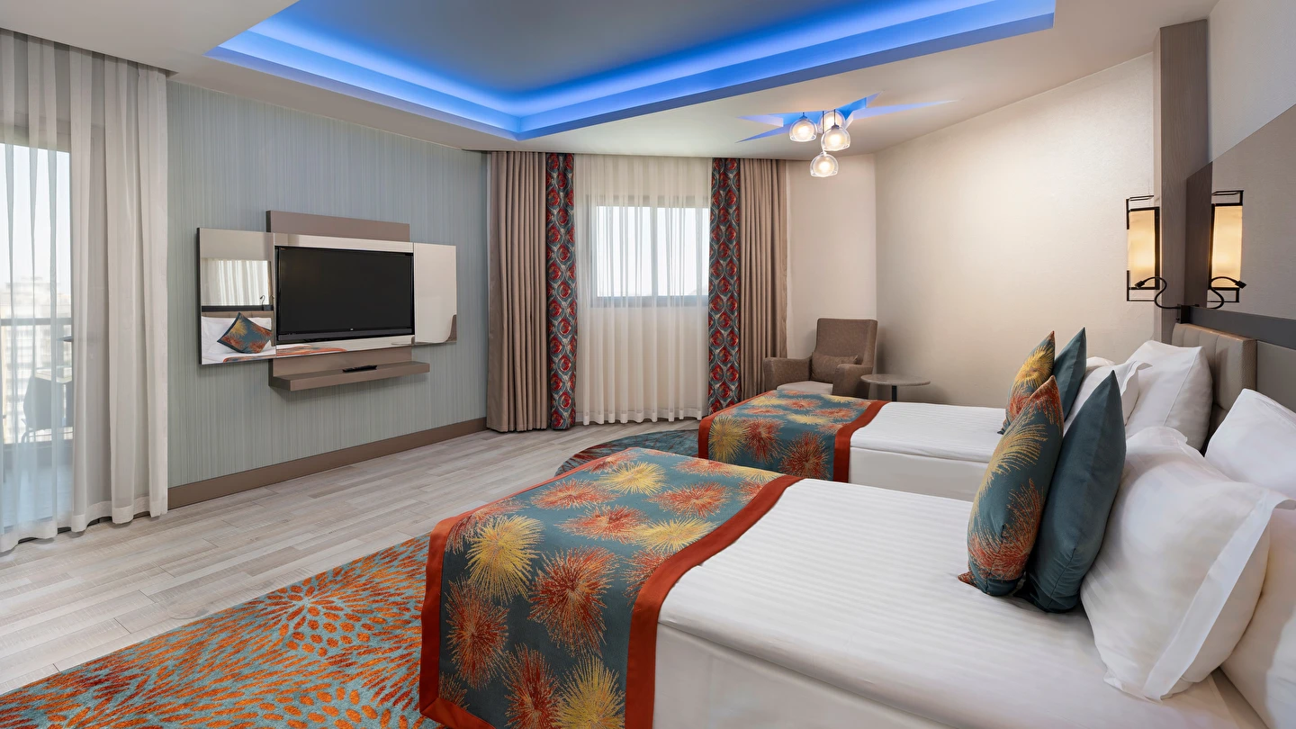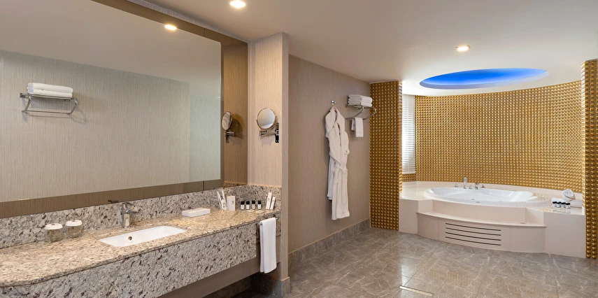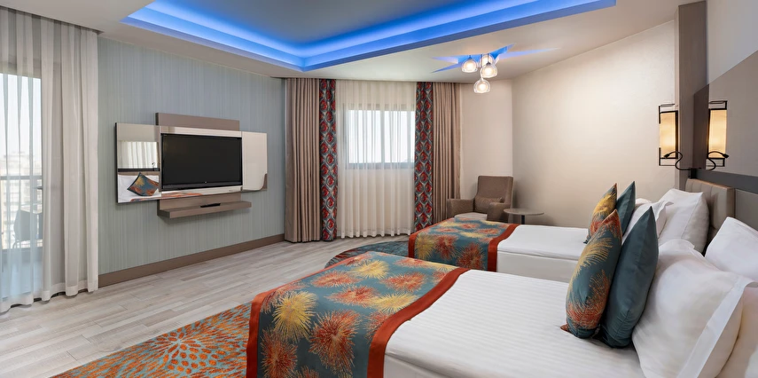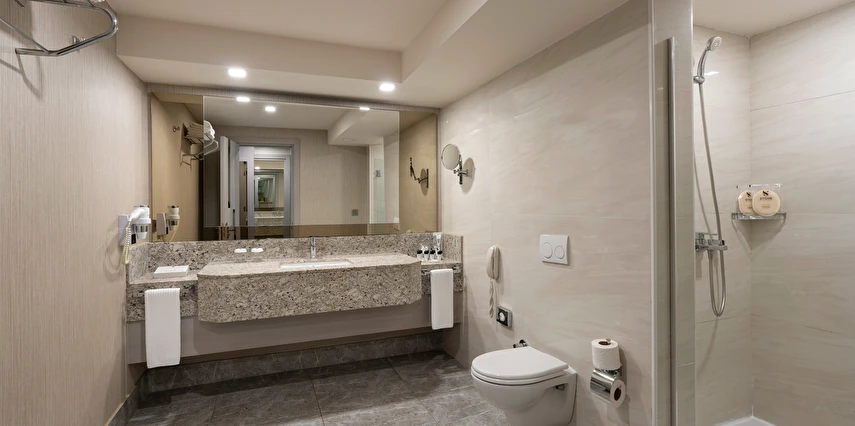 Spa & Wellness: Türk Hamamı, Buhar odası ve Sauna kullanımı 12 yaş altı için uygun değildir. Sauna, Türk hamamı (Hamamda alınan bakımlar hariç), Buhar odası-Dinlenme odası, hizmetleri ücretsiz, hizmetler ve saatleri sezon içerisinde otel tarafından operasyon ve tedarik edebilme durumu doğrultusunda değişebilir.