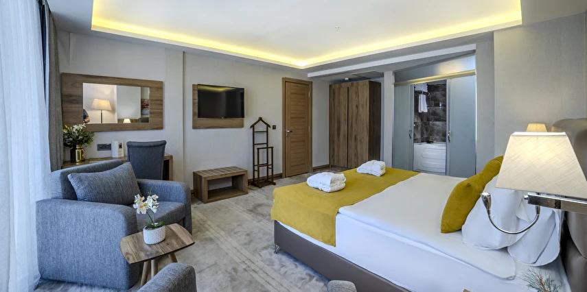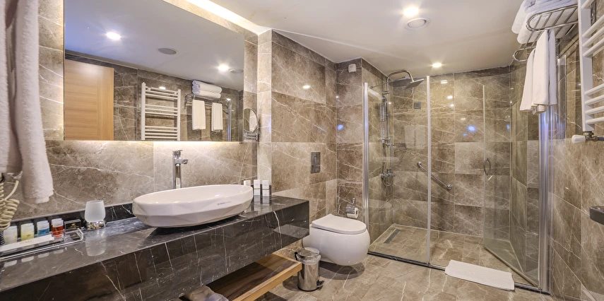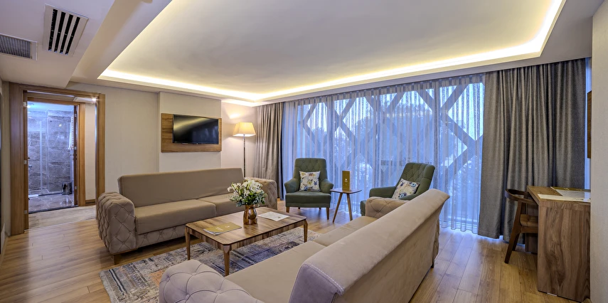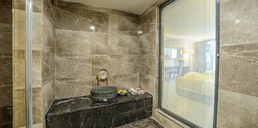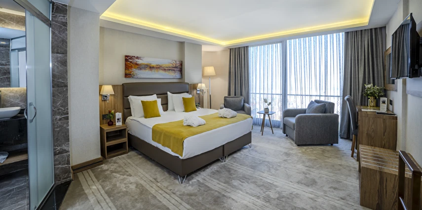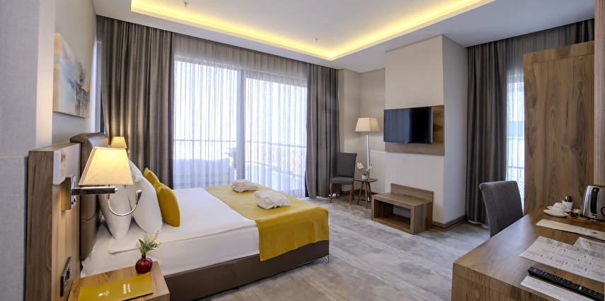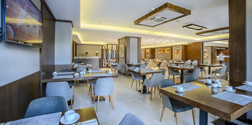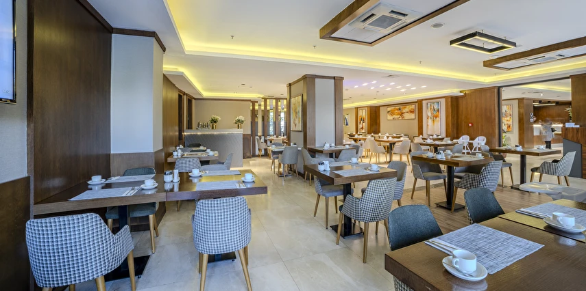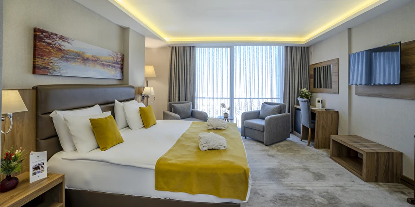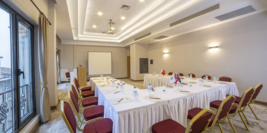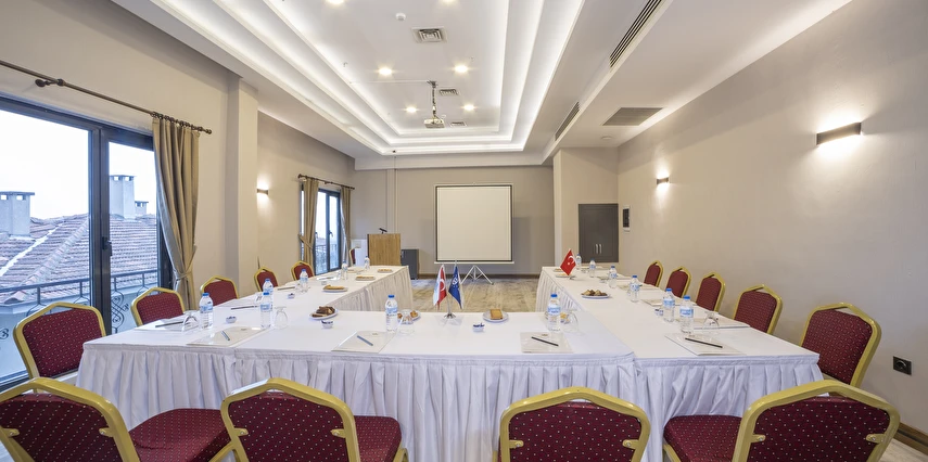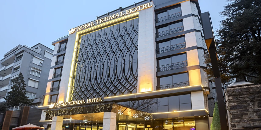 Daha Fazla Göster*Tesisin Termal Havuzları tadilat sebebi ile kapalı olacaktır. Bursa’nın Çekirge mevkiinde yer alan Royal Termal Hotel, güler yüzlü ekibi ile misafirlerini ağırlıyor. 90 oda ile hizmet veren tesisin odalarında ve ortak alanlarında internet hizmeti ücretsiz olarak sunuluyor. Bursa Kültür Parkı’na yürüyüş mesafesinde konumlanan tesis; Mudanya/Güzelyalı Feribot İskelesi’ne 25 km, Uludağ’a 35 km ve Yenişehir Havaalanı'na 40 km uzaklıkta bulunuyor. Tesiste, tam donanımlı teknik altyapı ve ekipmanı ile 10 kişiden 90 kişiye kadar hizmet verebilen 2 adet toplantı salonu mevcut. 100 metrekare genişliğindeki Hacivat Salonu; 90 kişiye kadar farklı yerleşim düzenlerinde toplantı, eğitim ve seminer organizasyonları için tam donanımlı teknik ekipmanı, kahve molaları için geniş fuaye alanı ile hizmet veriyor. Salonda teknik ekipman olarak; barkovizyon, ses sistemi, masa ve telsiz mikrofonu, flipchart, yazı tahtası ve kalemleri kablosuz internet, kablolu internet, kürsü mevcut. Sigara içme alanı olarak balkon var ve balkonda bistro masalar bulunuyor. 40 metrekare genişliği ile 50 kişiye kadar farklı yerleşim düzenlerinde toplantı, eğitim ve seminer organizasyonları için hizmet veren Karagöz Toplantı Salonu’nda; barkovizyon, ses sitemi, masa ve telsiz mikrofonu, flipchart, yazı tahtası ve kalemleri kablosuz internet, kablolu internet, kürsü mevcut. Geniş fuaye alanında ya da salon içinde kahve molaları verilebilir. Tesiste hizmet veren La Rosa Cafe & Restaurant, Bursa manzarası eşliğinde keyifle yemek yeme imkanı sunuyor. İş yemeğinden özel kutlamalara kadar profesyonel servis kalitesi ile misafirlerini ağırlayan tesis, 11.00-01.00 saatleri arasında açık.