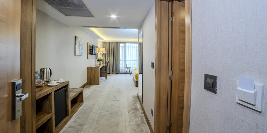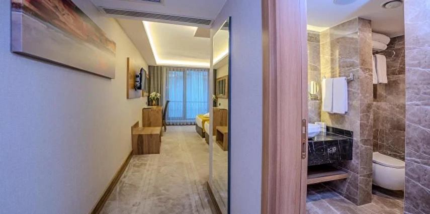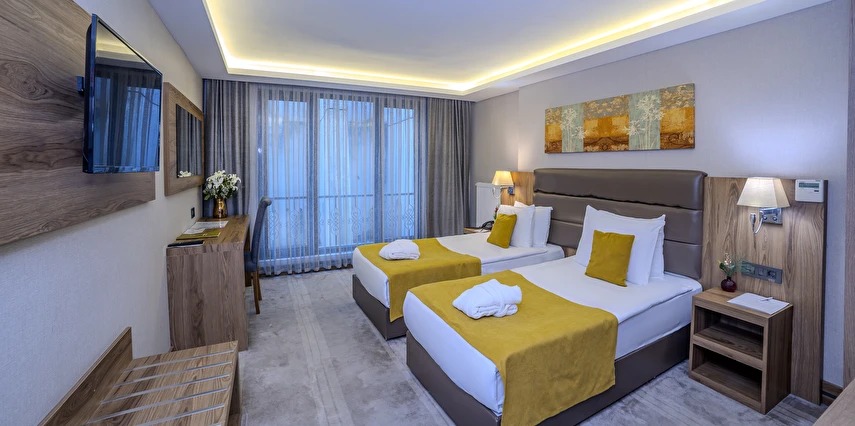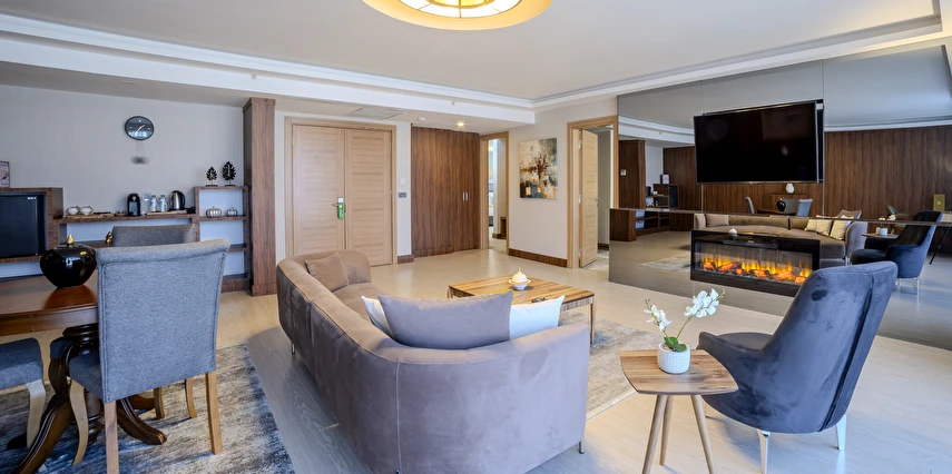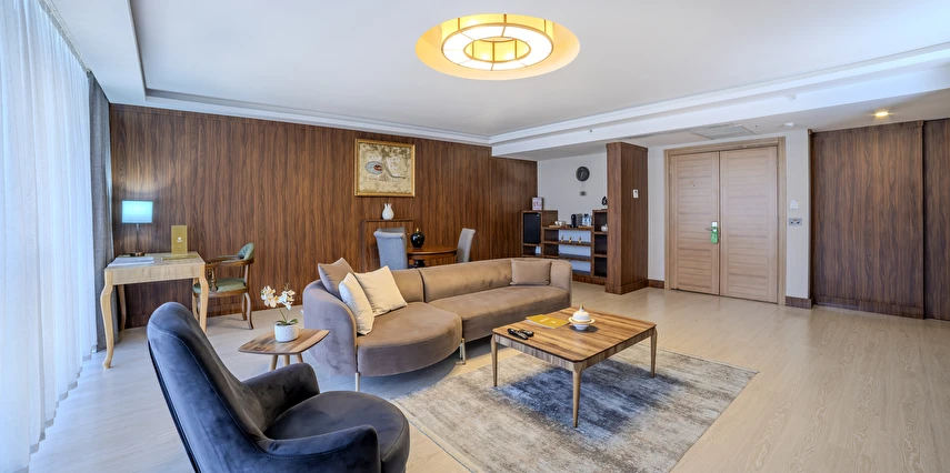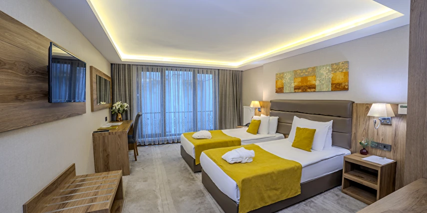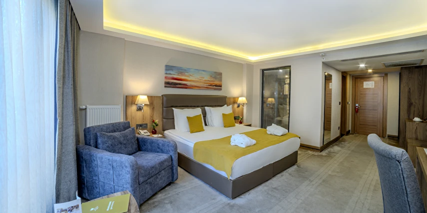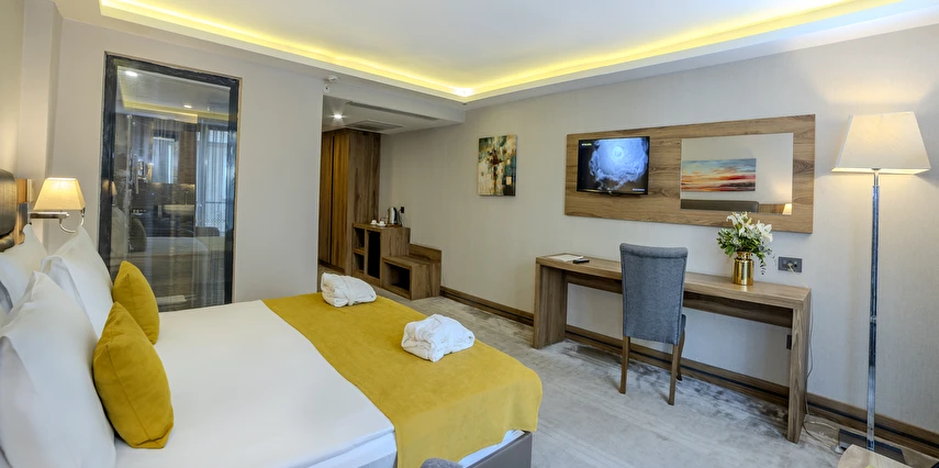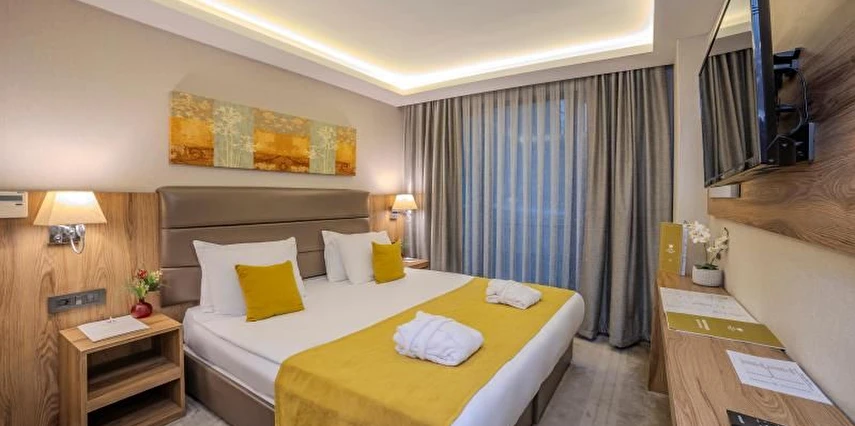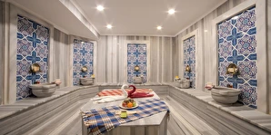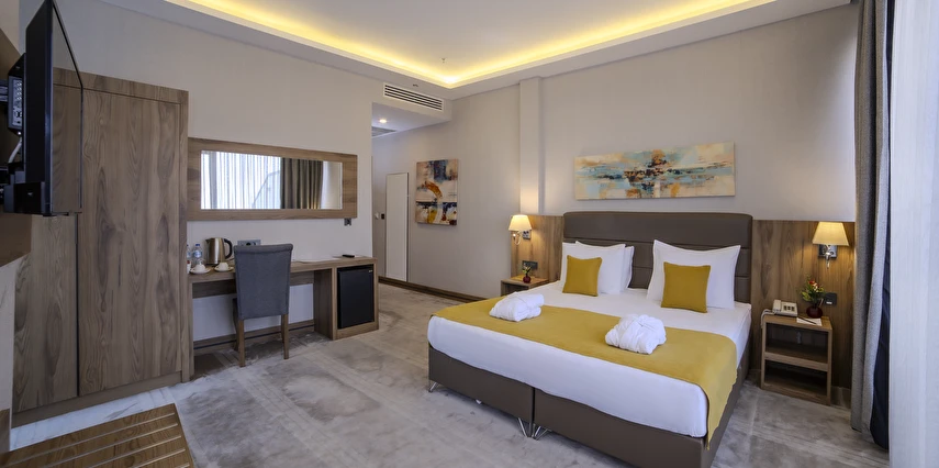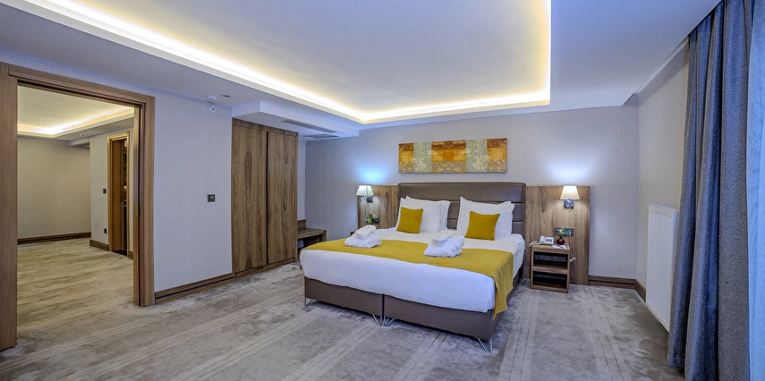Daha Fazla Göster*Tesisin Termal Havuzları tadilat sebebi ile kapalı olacaktır. Bursa’nın Çekirge mevkiinde yer alan Royal Termal Hotel, güler yüzlü ekibi ile misafirlerini ağırlıyor. 90 oda ile hizmet veren tesisin odalarında ve ortak alanlarında internet hizmeti ücretsiz olarak sunuluyor. Bursa Kültür Parkı’na yürüyüş mesafesinde konumlanan tesis; Mudanya/Güzelyalı Feribot İskelesi’ne 25 km, Uludağ’a 35 km ve Yenişehir Havaalanı'na 40 km uzaklıkta bulunuyor. Tesiste, tam donanımlı teknik altyapı ve ekipmanı ile 10 kişiden 90 kişiye kadar hizmet verebilen 2 adet toplantı salonu mevcut. 100 metrekare genişliğindeki Hacivat Salonu; 90 kişiye kadar farklı yerleşim düzenlerinde toplantı, eğitim ve seminer organizasyonları için tam donanımlı teknik ekipmanı, kahve molaları için geniş fuaye alanı ile hizmet veriyor. Salonda teknik ekipman olarak; barkovizyon, ses sistemi, masa ve telsiz mikrofonu, flipchart, yazı tahtası ve kalemleri kablosuz internet, kablolu internet, kürsü mevcut. Sigara içme alanı olarak balkon var ve balkonda bistro masalar bulunuyor. 40 metrekare genişliği ile 50 kişiye kadar farklı yerleşim düzenlerinde toplantı, eğitim ve seminer organizasyonları için hizmet veren Karagöz Toplantı Salonu’nda; barkovizyon, ses sitemi, masa ve telsiz mikrofonu, flipchart, yazı tahtası ve kalemleri kablosuz internet, kablolu internet, kürsü mevcut. Geniş fuaye alanında ya da salon içinde kahve molaları verilebilir. Tesiste hizmet veren La Rosa Cafe & Restaurant, Bursa manzarası eşliğinde keyifle yemek yeme imkanı sunuyor. İş yemeğinden özel kutlamalara kadar profesyonel servis kalitesi ile misafirlerini ağırlayan tesis, 11.00-01.00 saatleri arasında açık.