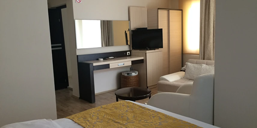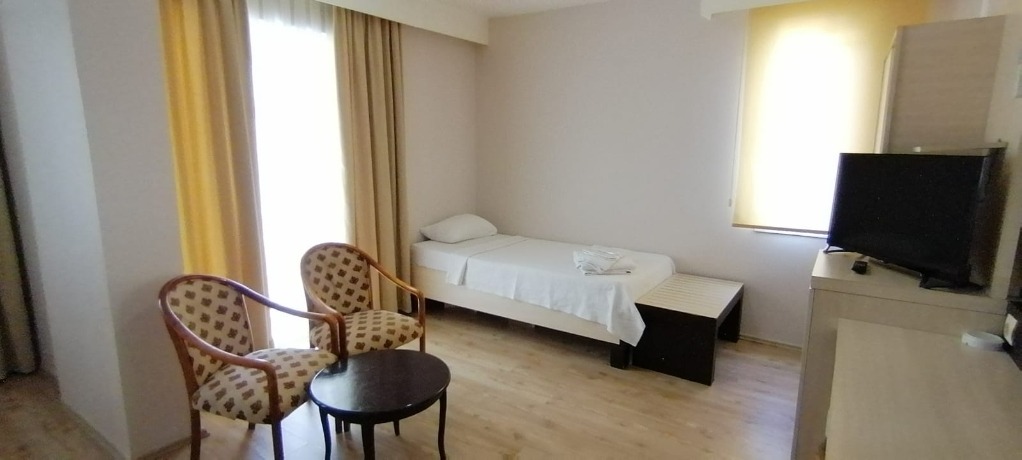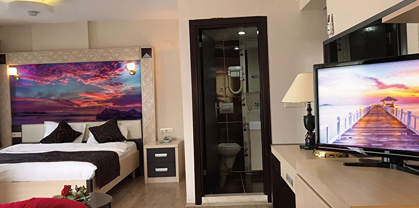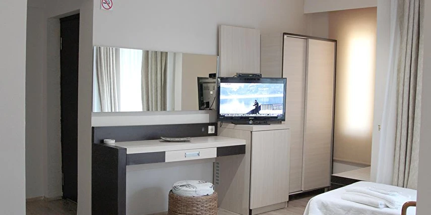 Her odada klima, balkon, mini buzdolabı ve TV gibi temel donanımlar bulunur.