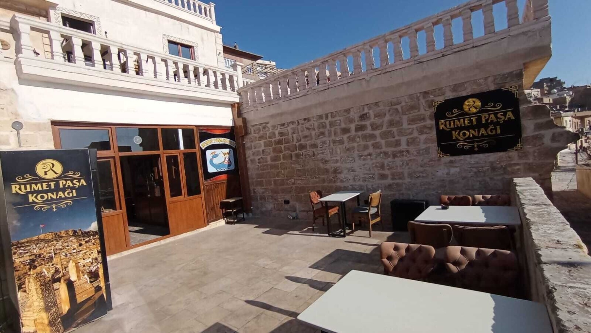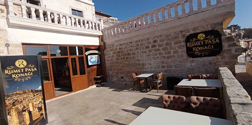Rumet Paşa Konağı, Mardin’in Artuklu bölgesinde tarihi şehir dokusuyla iç içe konumlanan butik bir konaklama tesisidir. Geleneksel Mardin taş mimarisine sadık kalınarak restore edilmiş yapısı, konuklara şehir merkezinin tarihî atmosferini yaşatan bir deneyim sunar; Mezopotamya Ovası manzarasına karşı uyanmak gibi karakteristik özellikler de bulunur.