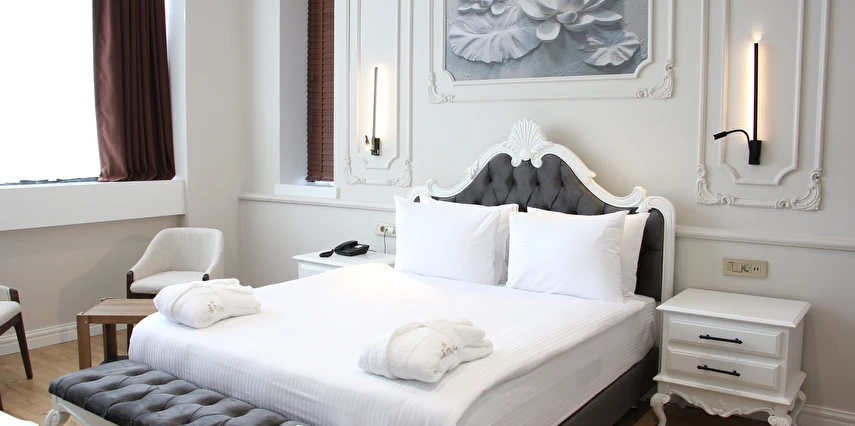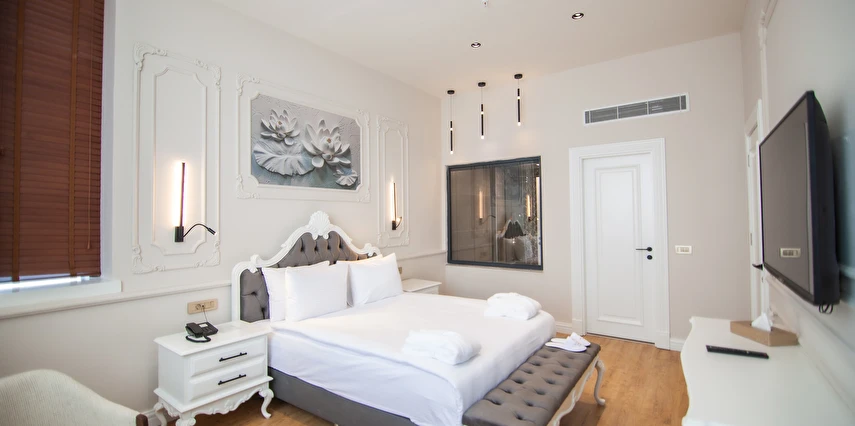 Toplam 118 odası bulunan otelde; Deluxe ve Süit seçenekleri yer alır.