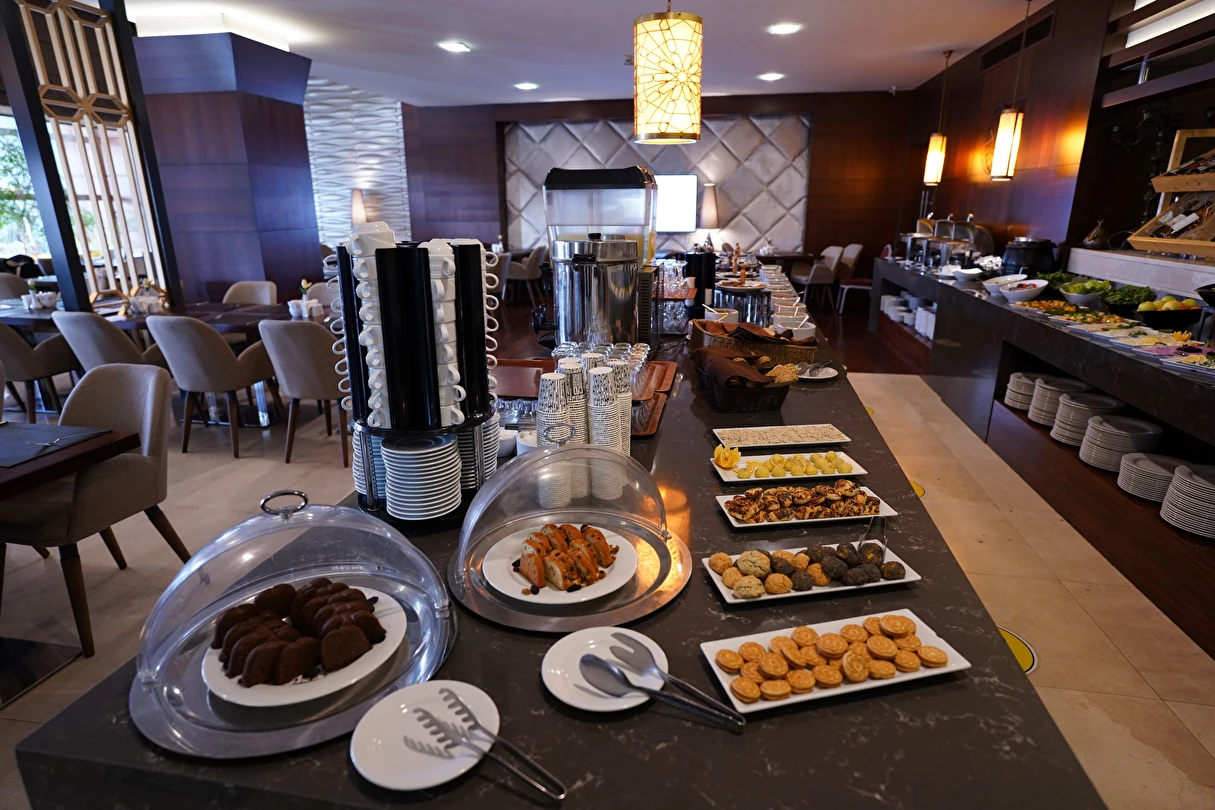 Gurme Lezzetler: Güne zengin ve yöresel bir açık büfe kahvaltı ile başlayın. Öğle ve akşam yemeklerinizde ise usta şeflerimizin elinden çıkan yerel Gaziantep lezzetlerini alakart restoranımızda deneyimleyin.