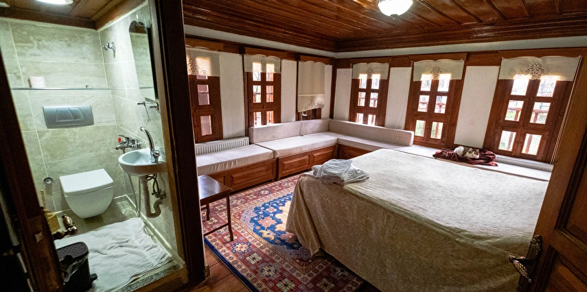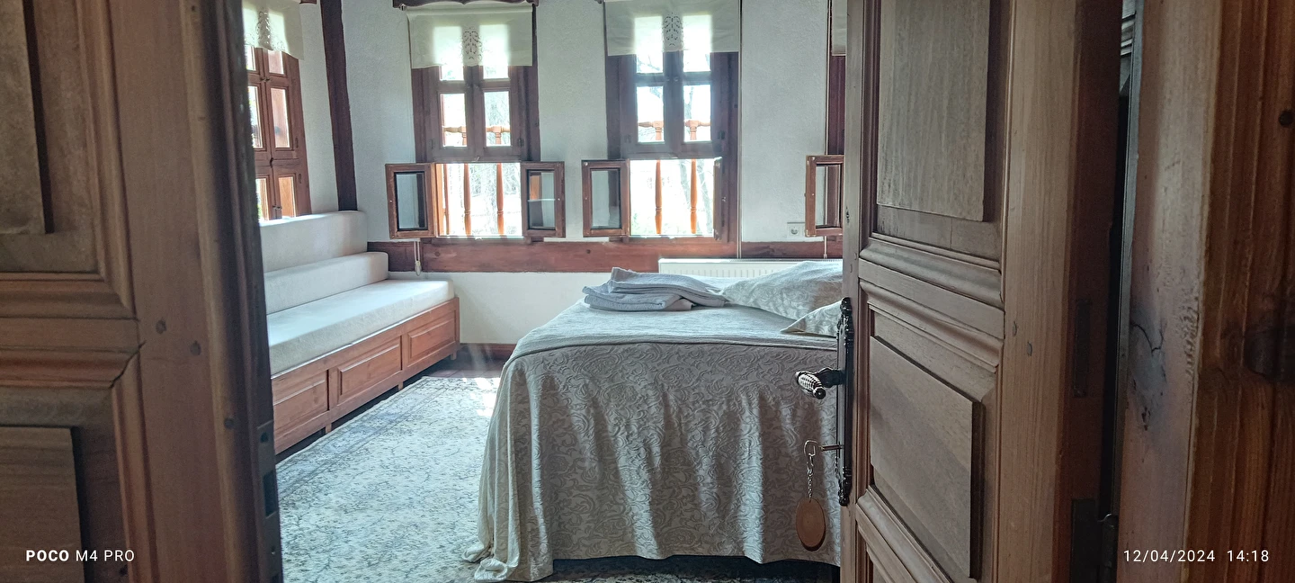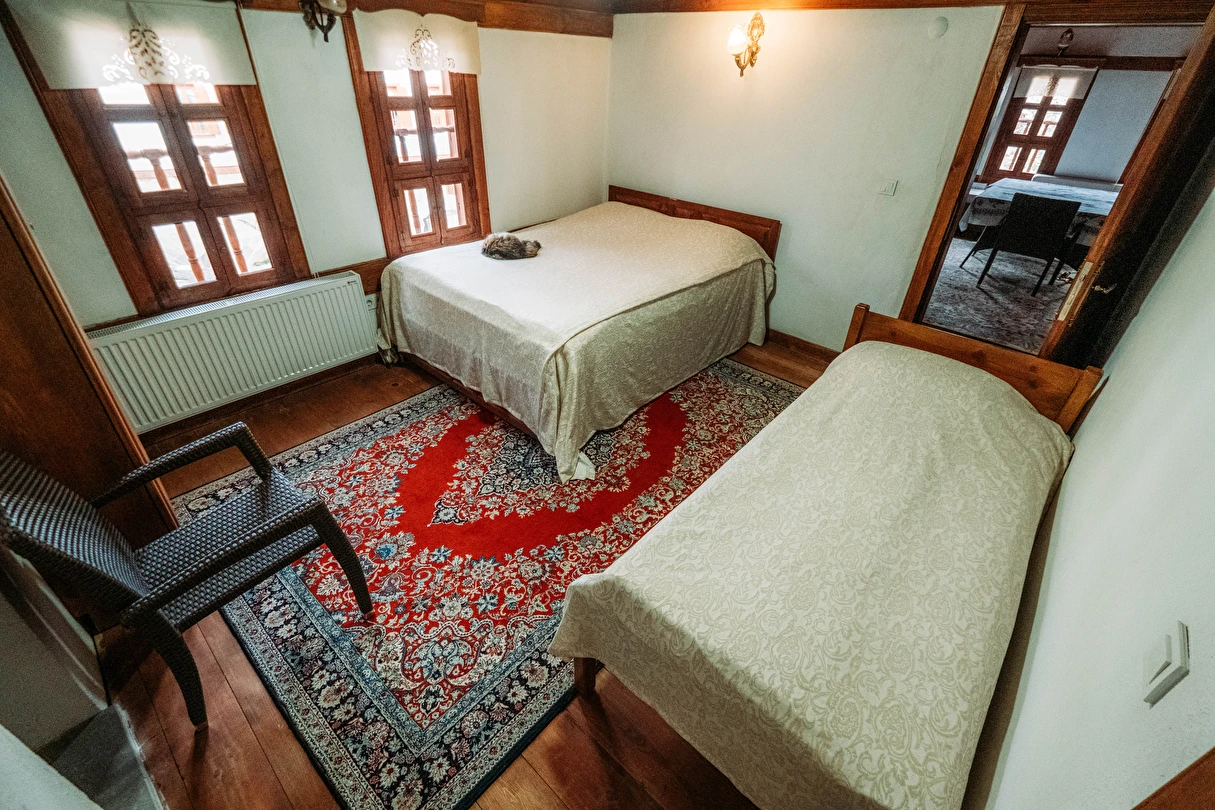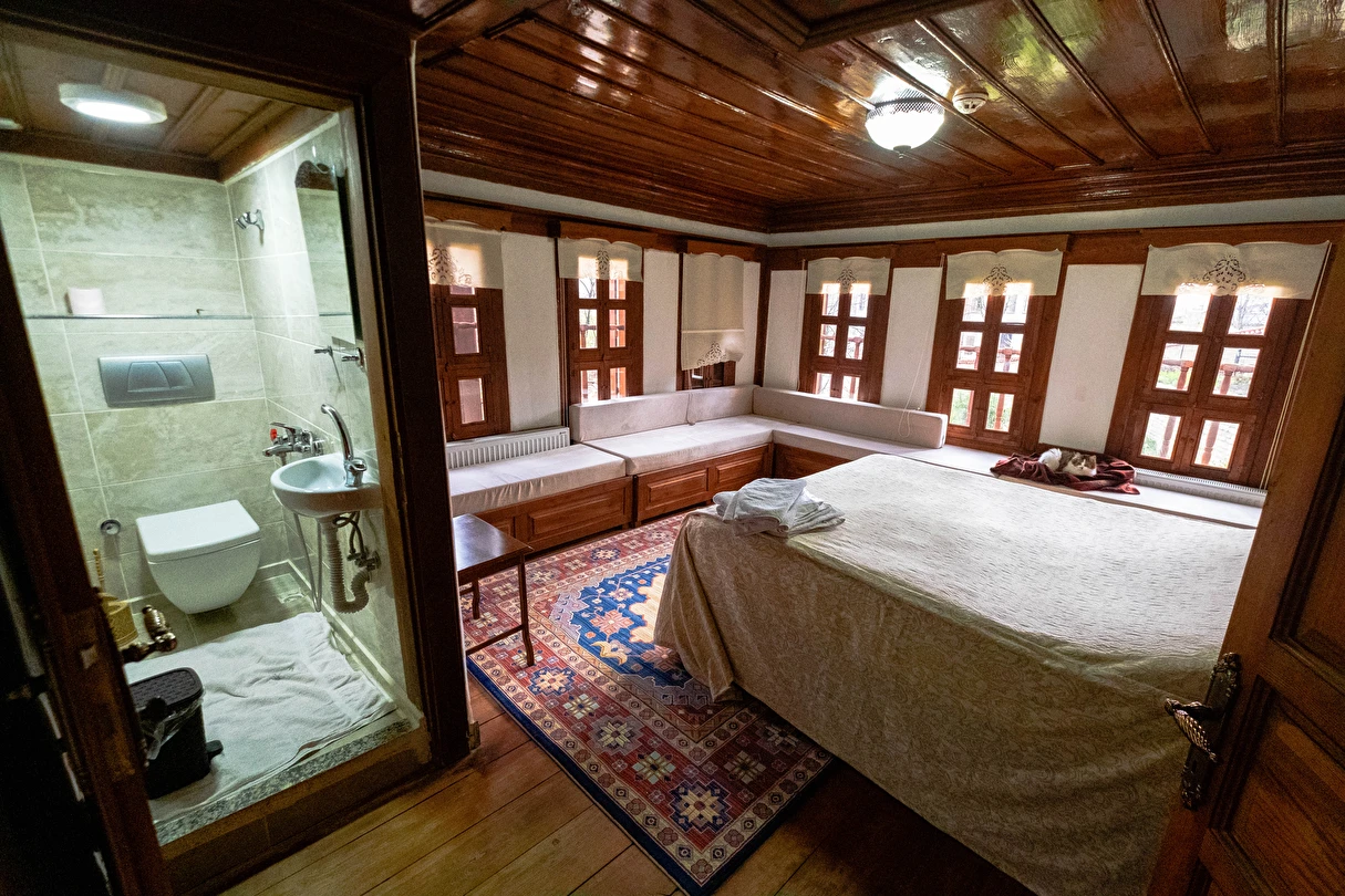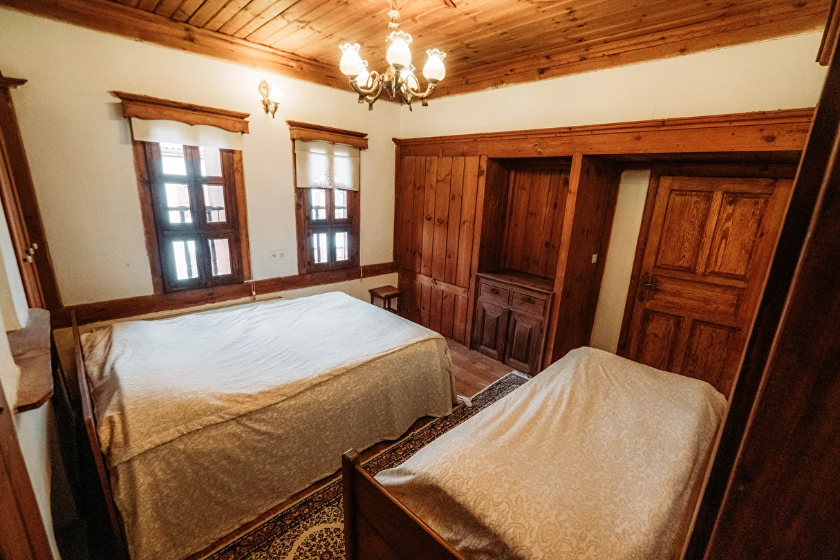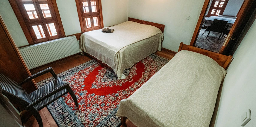 Daha Fazla GösterÇamlıca Konak Çarşı Evi, Safranbolu içinde Akçasu mahallesi Dere sokakta Grek stilinde inşa edilmiş. 6 odası ve 18 yatak kapasitesi bulunan konağın odalarında yenilenmiş banyolar, duşa kabinler ve tuvaletler mevcuttur. 2 adet sofa, bir taş oda, kahvaltı salonu, giriş bölümü hayat ve mutfaktan oluşmaktadır.Sessizliğin ve huzurun amaçlandığı konakta televizyon bulamazsınız. Konağın her bir köşesinde sessizlik ve huzur hakimdir. Dinlenmek; huzur bulmak isteyen misafirlerimizi mutlu göndermek için elimizden geleni fazlasıyla yapmaya çaba sarf etmekteyiz.