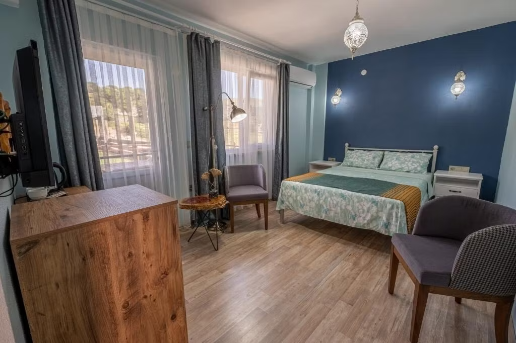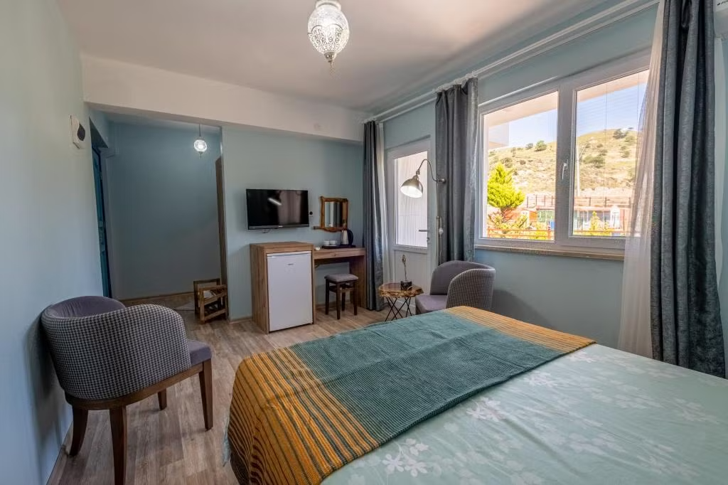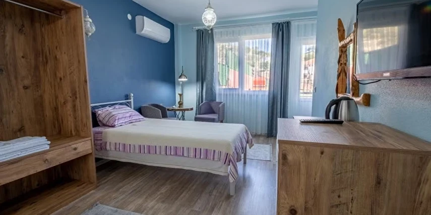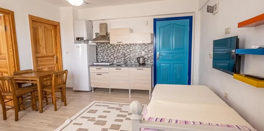 Gökçeada’nın muhteşem denizinin ve doğasının tadını çıkarmak isteyenleri ev konforunda ağırlayan Şahika Konukevi, her biri kendi mutfağına sahip apart daireleriyle hizmet veriyor. Tesiste sabahları serpme kahvaltı servis ediliyor.