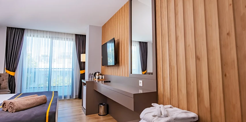 Tüm odalar ferah tasarımı, modern dekorasyon, yüksek konfor ve dinlenme odaklı detaylarla donatılmıştır. Superior ve Swim-Up odalar özellikle çift tatili deneyimini daha da özel kılmak için uygundur.