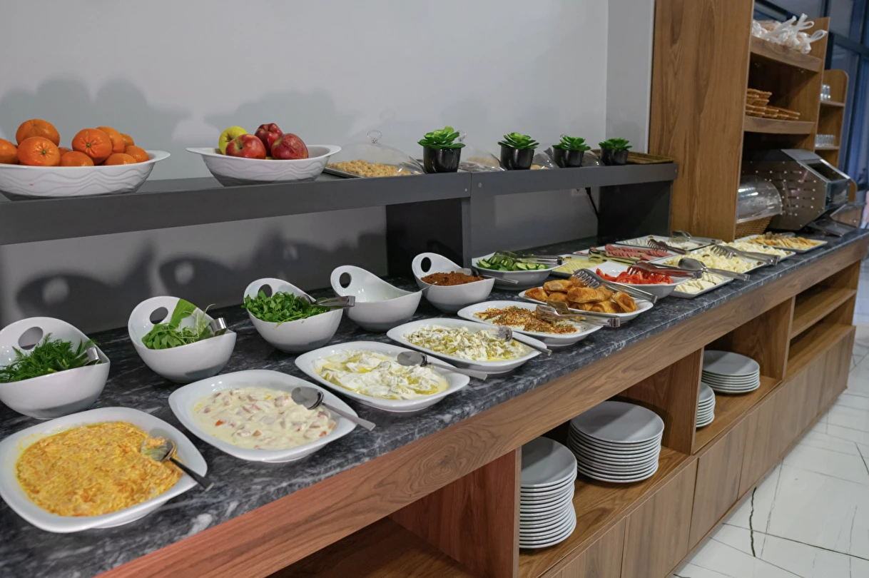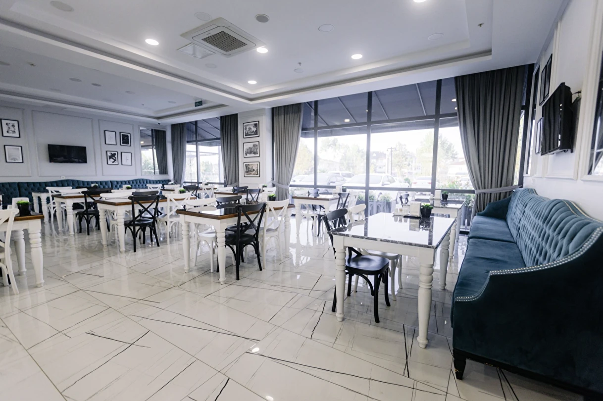 Restaurant & Cafe’mizde, günlük taze malzemelerle hazırlanan lezzetli ve sağlıklı menüler sunulmaktadır. Modern ve rahat atmosferimiz, aile yemekleri, özel kutlamalar ve keyifli buluşmalar için ideal bir ortam sağlar.