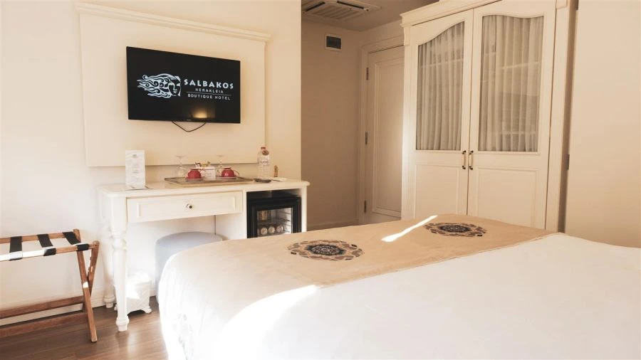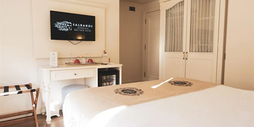 Her mevsim de sevgi dolu, sımsıcak atmosferi ile Alaçatı merkeze 3 dakikalık yürüyüş mesafesinde , bahçesinde sakinlik ve huzurun bulunduğu, arka caddesinde hareket ve eğlence dolu bir konumda yer alan butik otelimizde sizlere ev sahipliği yapmaktan mutluluk duyarız. Salbakos Herakleia Hotel'in tüm odalarında saç kurutma makinesi, minibar ,duş ,düz ekran TV ve klima ile donatılmıştır. Bazı odalarda bir oturma alanı bulunmaktadır. Salbakos Herakleia Hotel, bahçeye ve ücretsiz Wi-Fi erişime sahip olup Alaçatı çarşıya 300 metre mesafede bulunmaktadır. Odalarda bahçe manzarasının keyfini çıkarabilir ve açık yüzme havuzundan yararlanabilirsiniz.