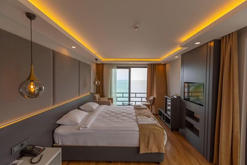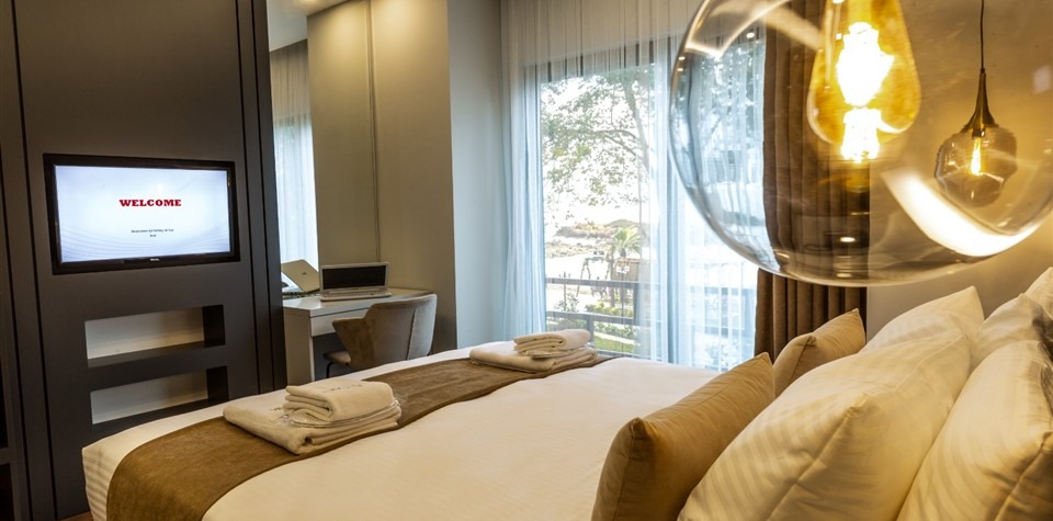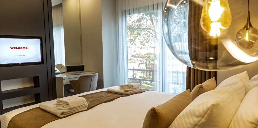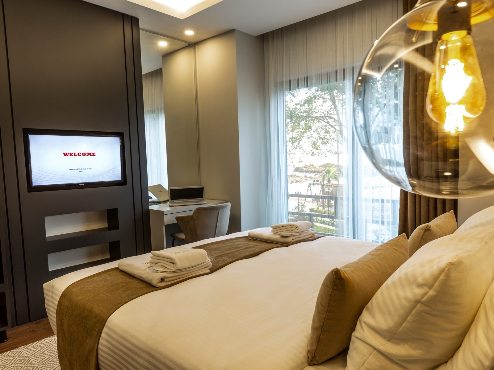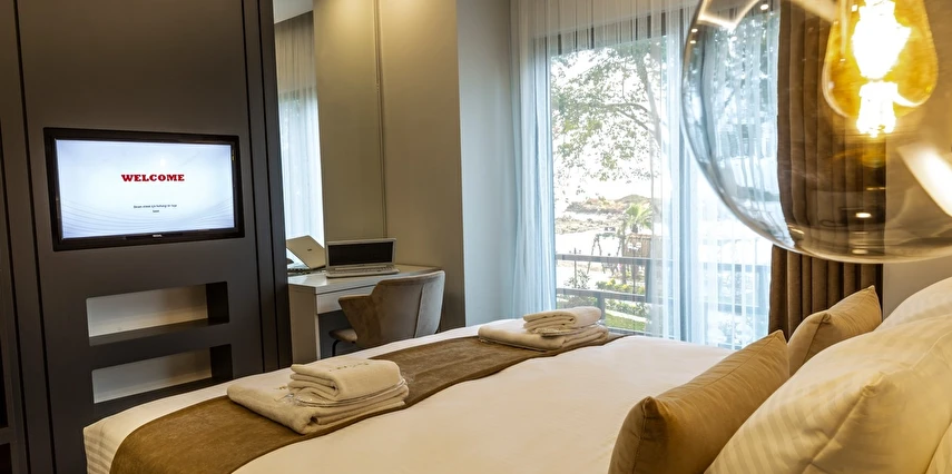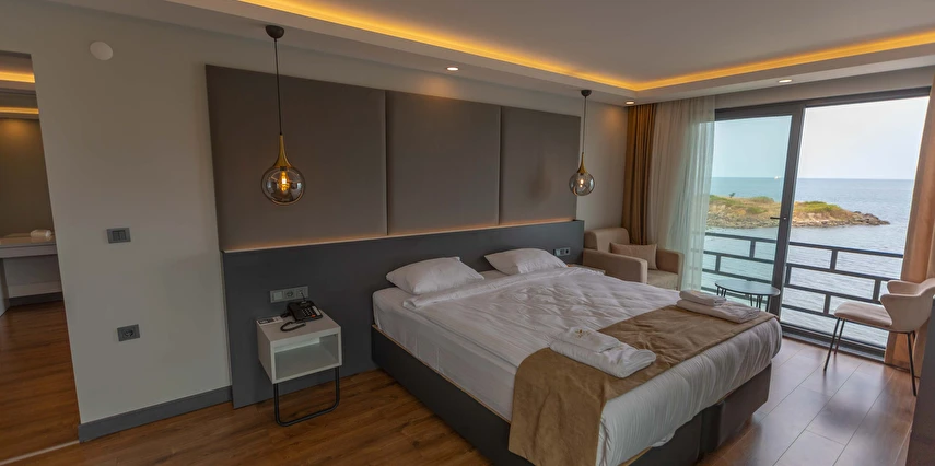 Otel ana bınada yer alan Deniz manzaralı köşe odalarda Geniş bir açı ile sunulan görsellik sizi daha da özel hissettirir.
