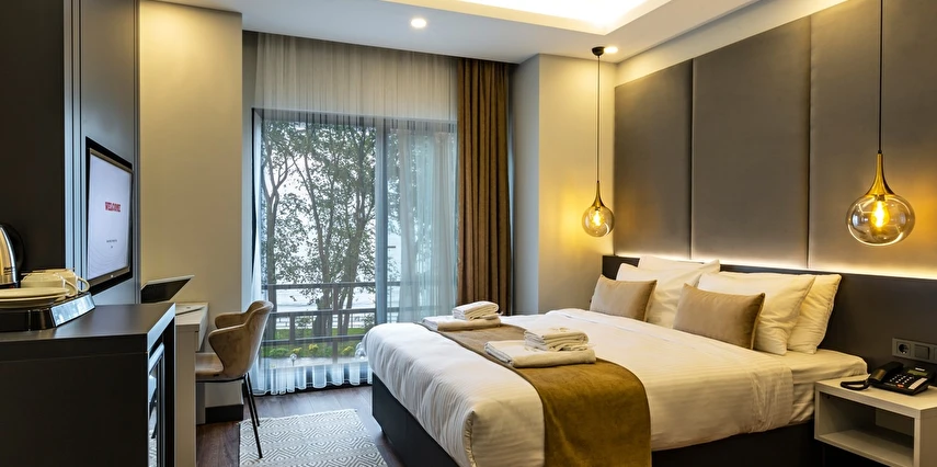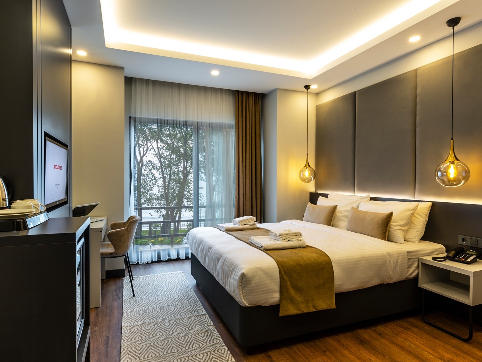 Otel ana bınada yer alan kısmi denız manzaralı odalarda şehrin kalabalıklığından uzakta sizi daha da sakin hissettirebilecek konsept .Oda 1 yatak odasından oluşmaktadır.Oda ıcerısınde 1 adet de tek kısılık sofa bed de mevcuttur.2 yteıksının kalabılecegı odada ,sofa bed kullanılarak extra 1 yetıskın daha konaklayabilmektedir.