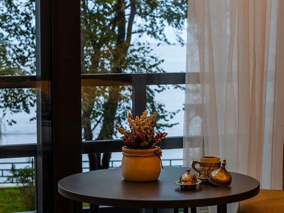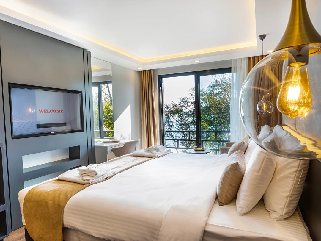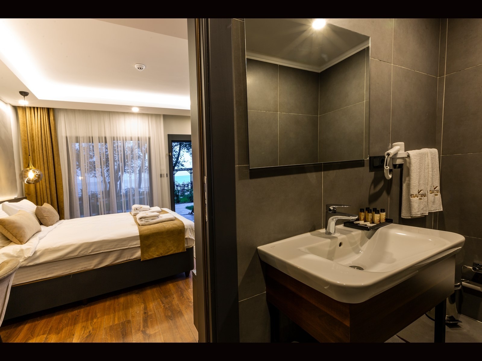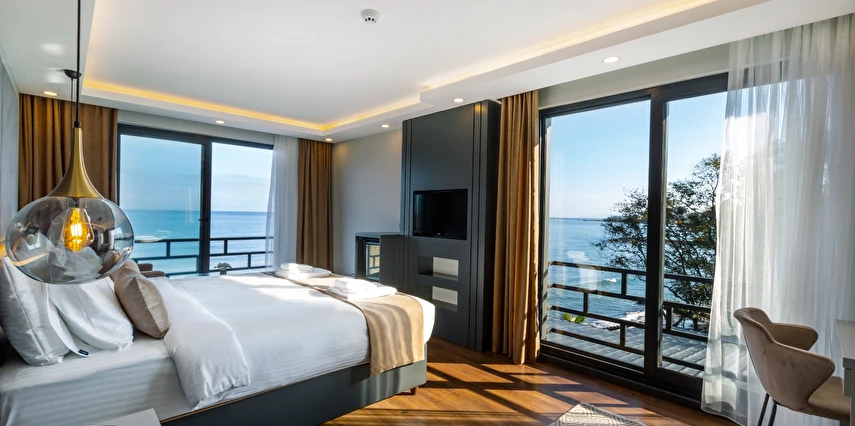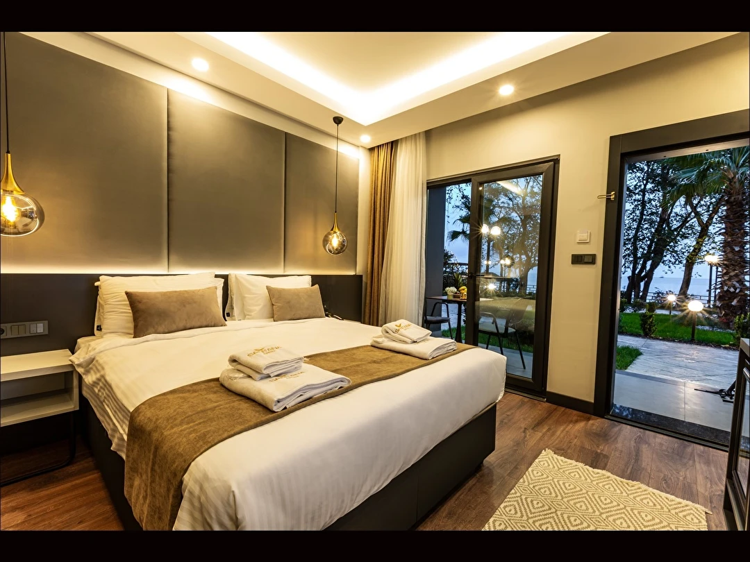 Deniz manzaralı ,Bahçe katında yer alan odalarımızda güne sakin ve enerji dolu bir şekilde uyanacaksınız.