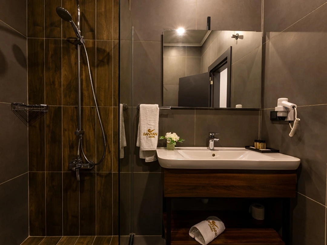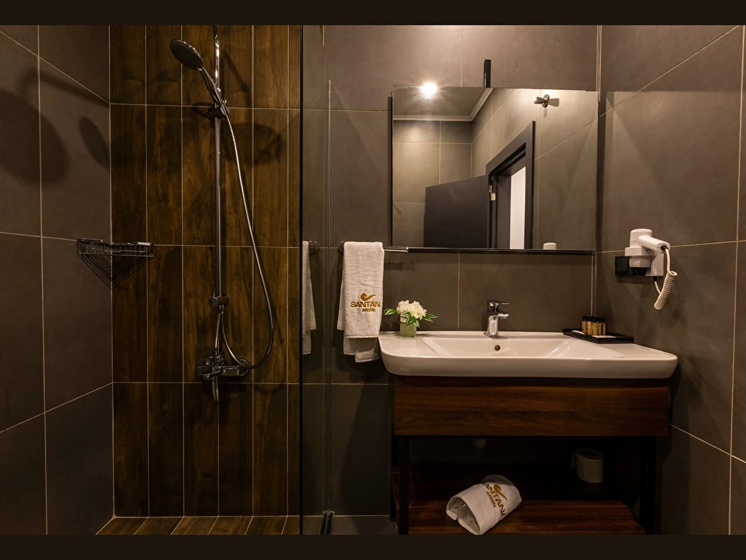 Detaylar : çay – kahve set up’ı,küvet, merkezi klima sistemi, Smart LED IP TV, direkt aramalı telefon, banyolarda telefon, mini bar, 24 saat oda servisi, çalışma masası, ücretsiz Wi-Fi internet erişimi, elektronik kasa, saç kurutma makinesi, makyaj aynası, terlik ve yastık servisimiz vardır.