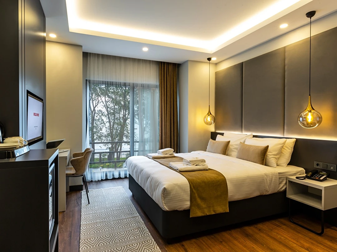 LED IP TV Direkt Hat Telefon Klima Çay - Kahve Setup ,Çalışma Masası ,Makyaj Aynası, Duş Banyo malzemeleri ,Terlik ,Saç Kurutma Makines,i Minibar ,Fransız Balkon ,24 saat oda servisi ,Extra yastık ,Güvenlik Kasası, Kablosuz internet bağlantısı ,7/24 misafir desteği, Istek üzerine bebek yatağı ,Acil çıkış planı