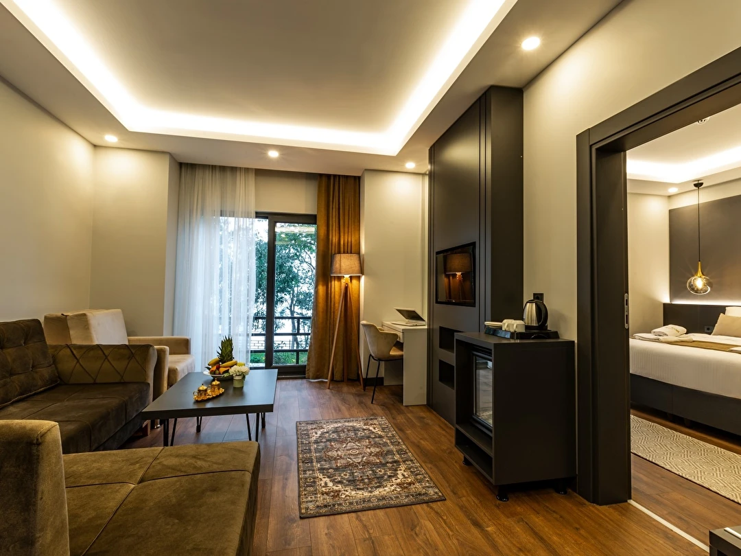 1 adet yatak odasından oluşan suıte odalarda 2 yetıskın konaklayabilmektedir.