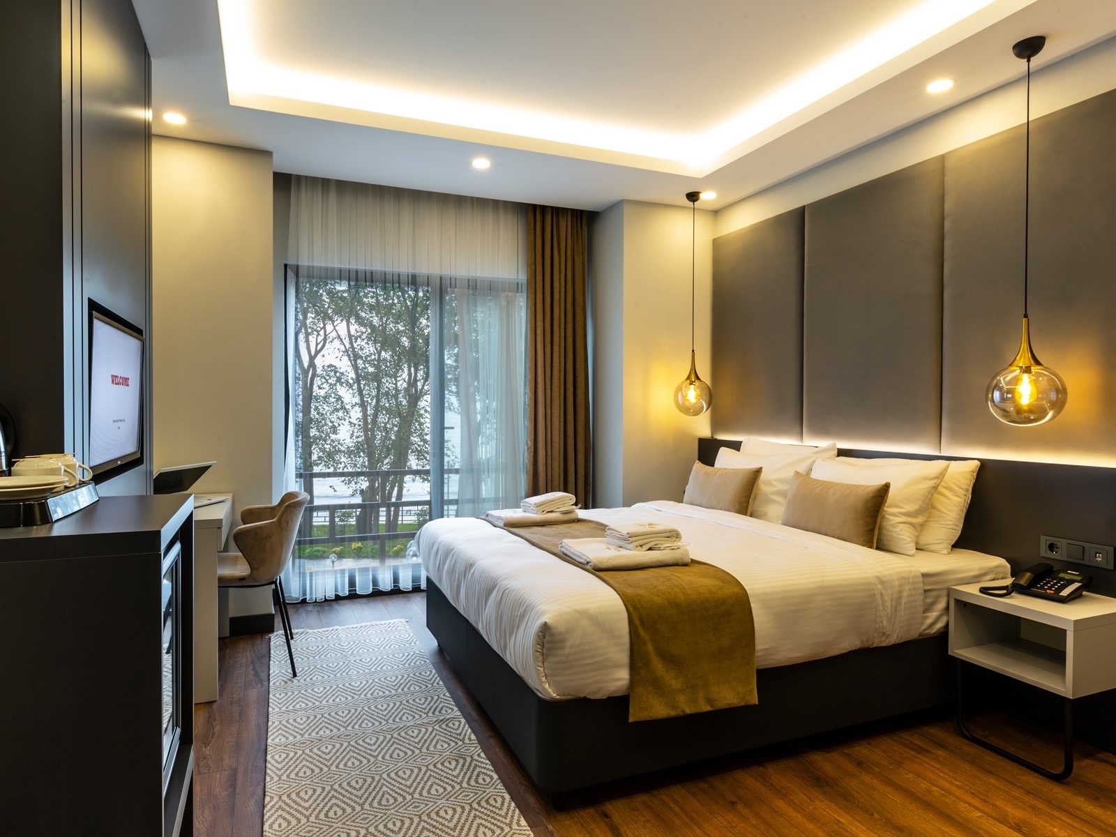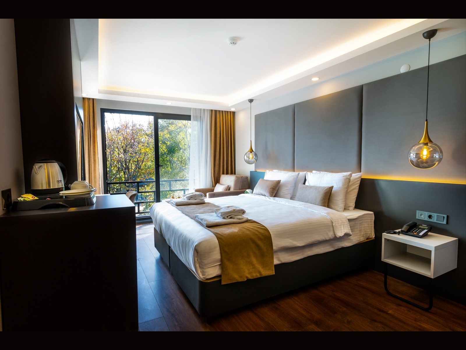 LED IP TV, Direkt Hat Telefon, Klima Çay - Kahve Setup, Çalışma Masası, Makyaj Aynası, Duş Banyo malzemeleri, Terlik Saç Kurutma Makinesi ,Minibar, Balkon, 24 saat oda servisi, Extra yastık, Güvenlik Kasası, Kablosuz internet bağlantısı, 7/24 misafir desteği ,Istek üzerine bebek yatağı ,Acil çıkış planı