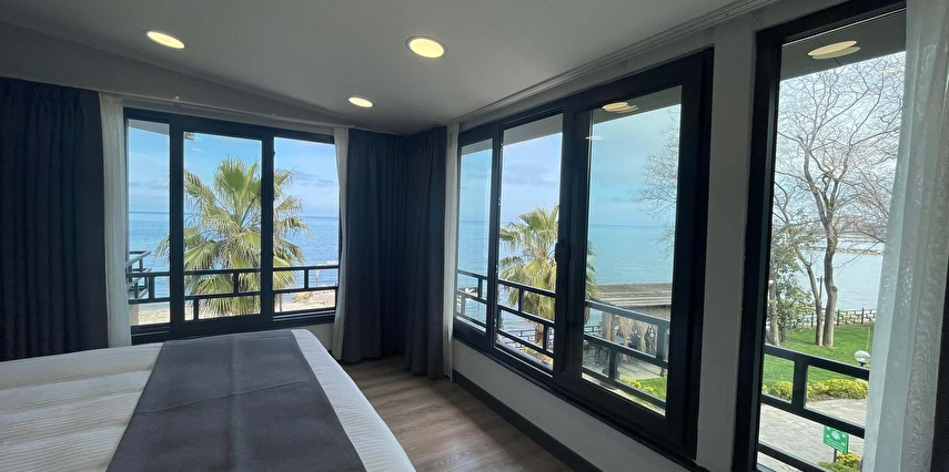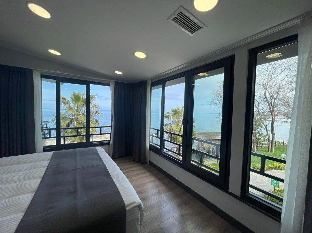 Deniz manzaralı ,Bahçe katında yer alan odalarımızda güne sakin ve enerji dolu bir şekilde uyanacaksınız.