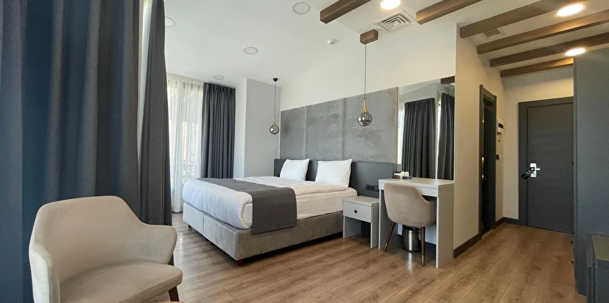 Detaylar : çay – kahve set up’ı,küvet, merkezi klima sistemi, Smart LED IP TV, direkt aramalı telefon, banyolarda telefon, mini bar, 24 saat oda servisi, çalışma masası, ücretsiz Wi-Fi internet erişimi, elektronik kasa, saç kurutma makinesi, makyaj aynası, terlik ve yastık servisimiz vardır.