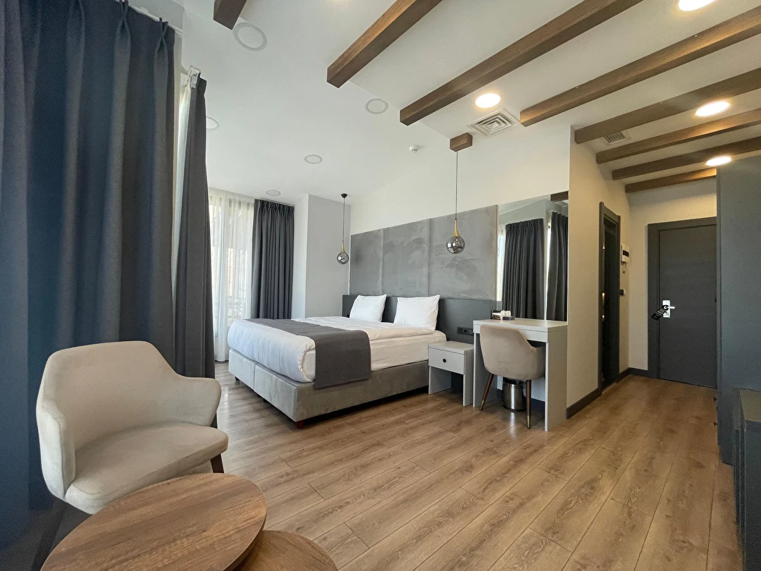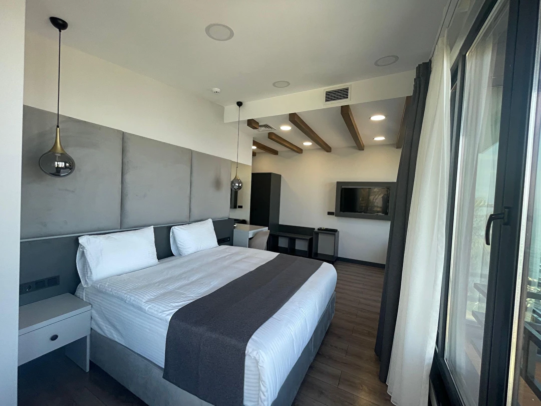 1+1 olarak hazırlanan odalar ( 1 yatak odası ve 1 salondan oluşmaktadır). 2 yetıskının rahatlıkla kalabılecegı oda konseptınde ,Extra yatak ile 4 yetıskın konaklama sağlayabilmektedir.