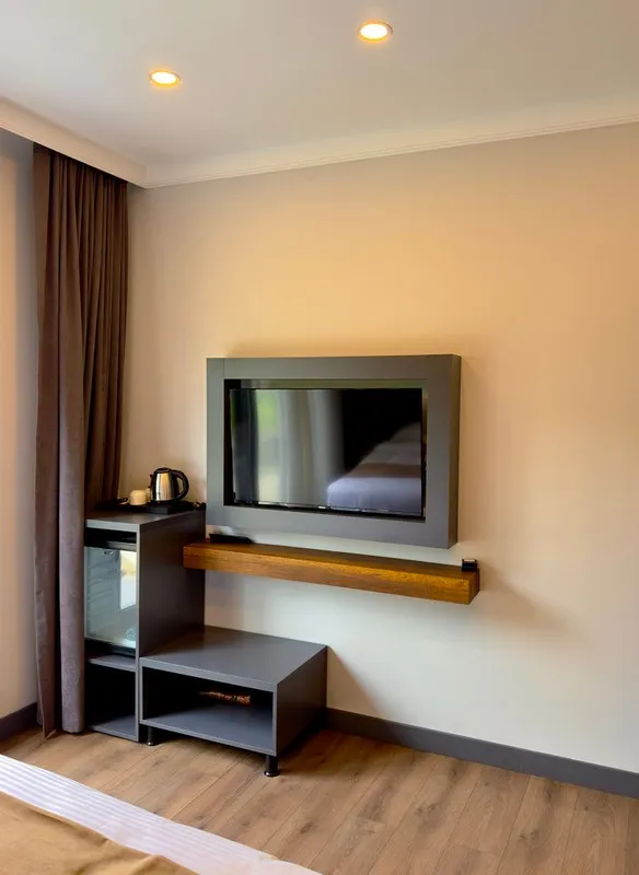 Detaylar : çay – kahve set up’ı, merkezi klima sistemi, Smart LED IP TV, direkt aramalı telefon, banyolarda telefon, mini bar, 24 saat oda servisi, çalışma masası, ücretsiz Wi-Fi internet erişimi, elektronik kasa, saç kurutma makinesi, makyaj aynası, terlik ve yastık servisimiz vardır.