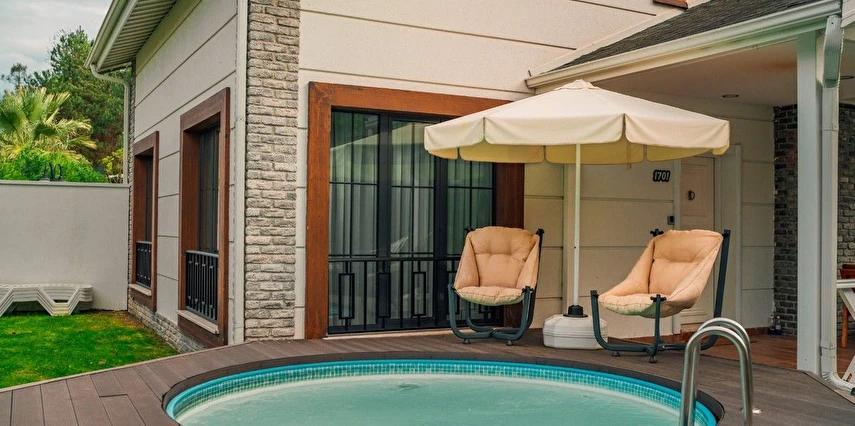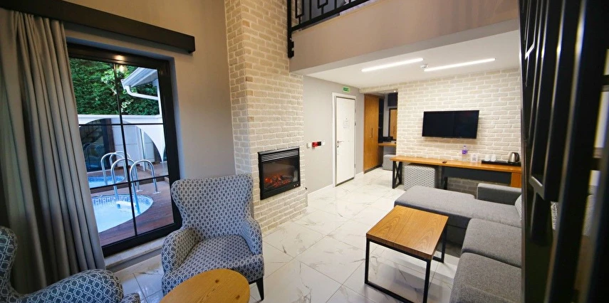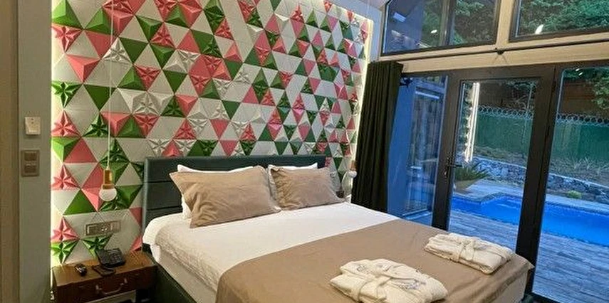 - Otelde 1+1 deluxe odalardan 7 adeti havuzlu 9 adeti havuzsuz, standart bungalov 1 adet havuzlu 1 adet havuzsuz, 3+1 family odalardan 2 adeti havuzlu ve bahçeli 2 adeti havuzlu ve verandalı (bahçesiz), 1 adet 2+1 villa vera geniş alana yayılmış tüm odalardan izole kış bahçesi, ateş çukuru mevcut ve daha büyük havuzludur.