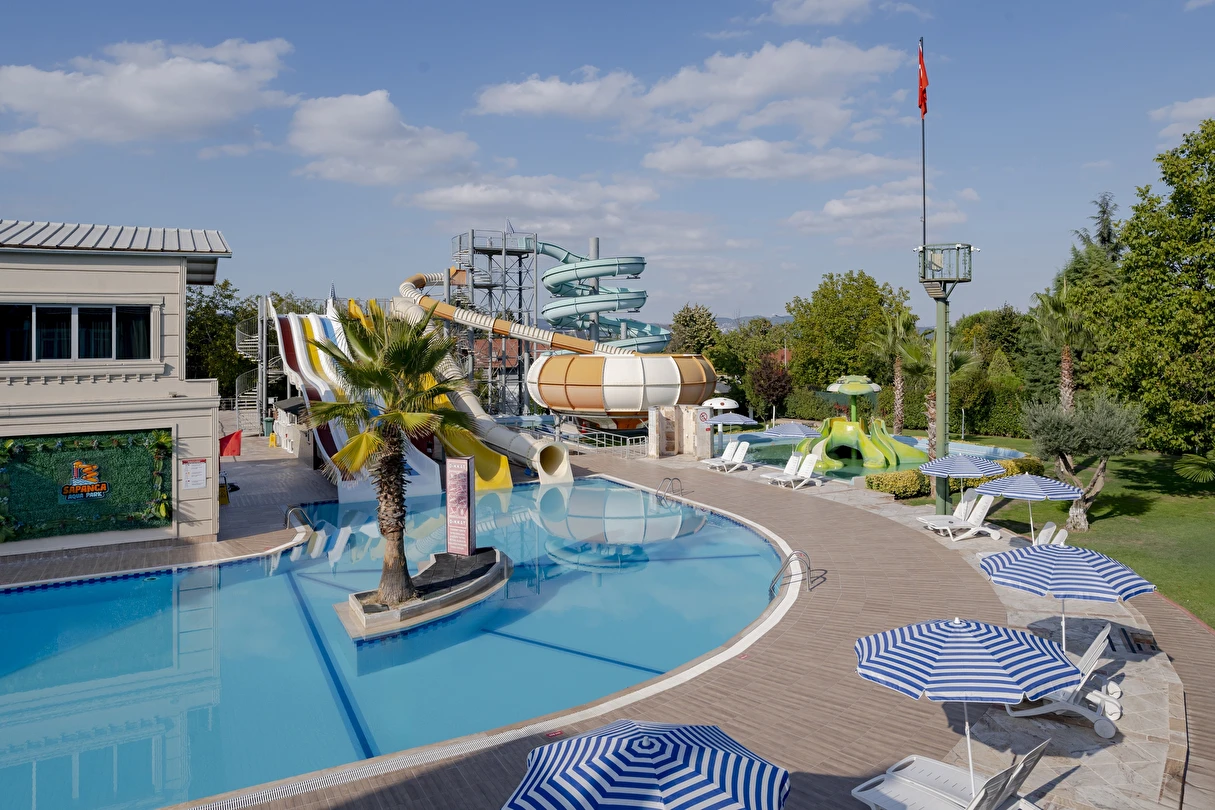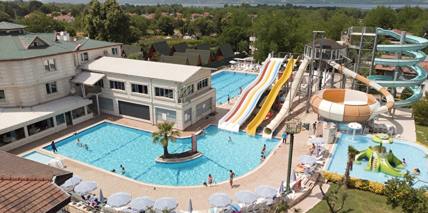 Sapanca'nın TEK EN BÜYÜK HAVUZ VE AQUA PARK TEMALI oteli olma özelliği ile gündelik yaşamın vermiş olduğu stres ve gürültüden uzak, hem ruhunuzun hem de bedeninizin dinlenip, doğayı, konforu ve lezzeti hissedebileceğiniz hem tatil hem de iş amaçlı konaklama imkanı sunuyor.