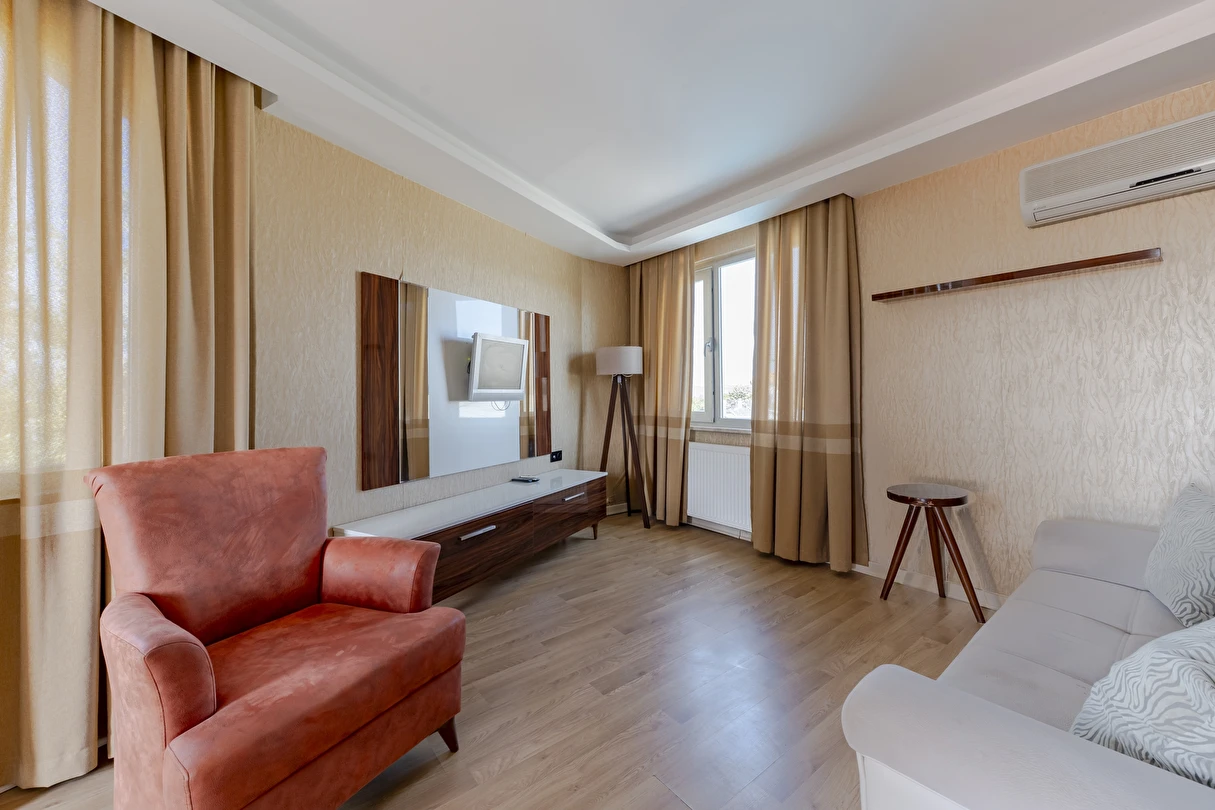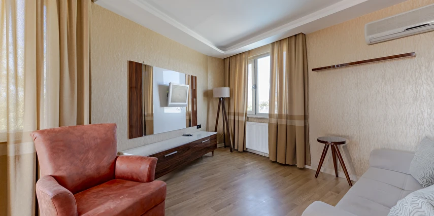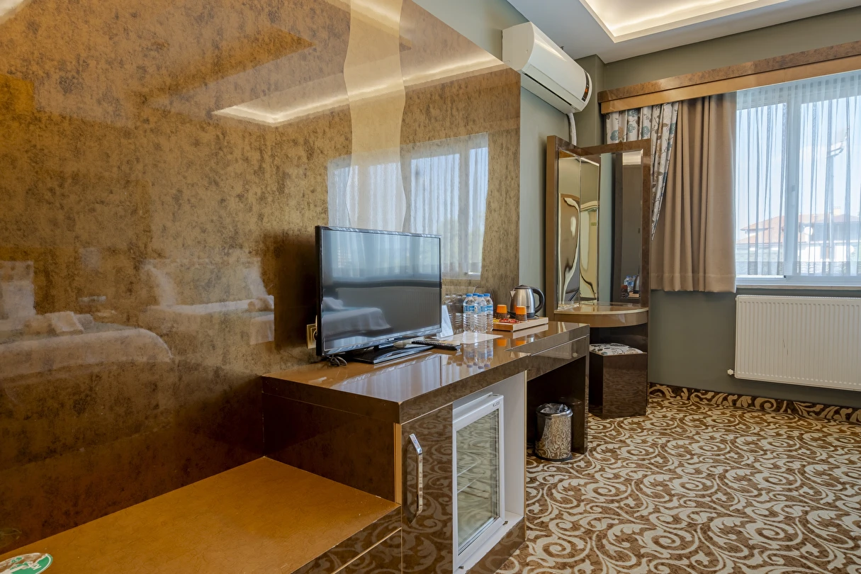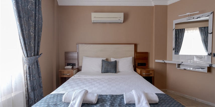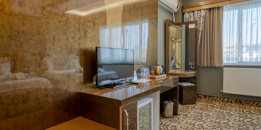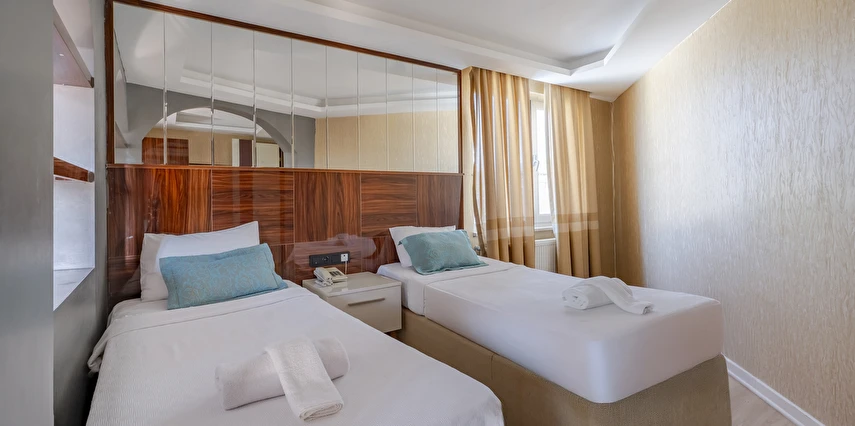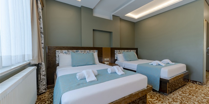 Deluxe Oda: 35 m² Deluxe Odalarımız, Standart odalar ile aynı özellikler (TV kanepesi mevcut değil) ve daha geniş bir yaşam alanı sunuyor. Odalarımızda anti stres yataklarımızda uykuya dalarken, tatiliniz esnasında gerçekten dinlendiğinizi fark edeceksiniz.