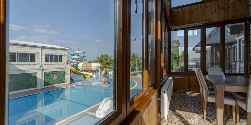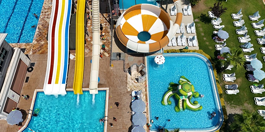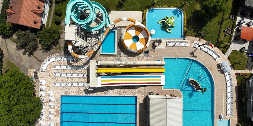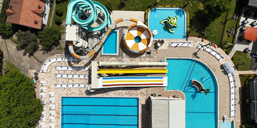 Otelimizde konaklayan misafirlerimizin ücretsiz kullanımına açık olan Spa merkezinde bir adet kapalı yüzme havuzu ve çocuk yüzme havuzu; Aqua Parkımızda toplam 5 kaydırak, 1Yarı Olimpik Yüzme Havuzu, 1 Kaydırak Havuzu, 1 Kaydıraklı Çocuk Havuzu, 1 Çocuk Havuzu vardır.