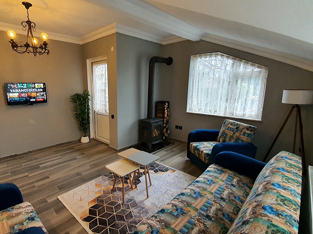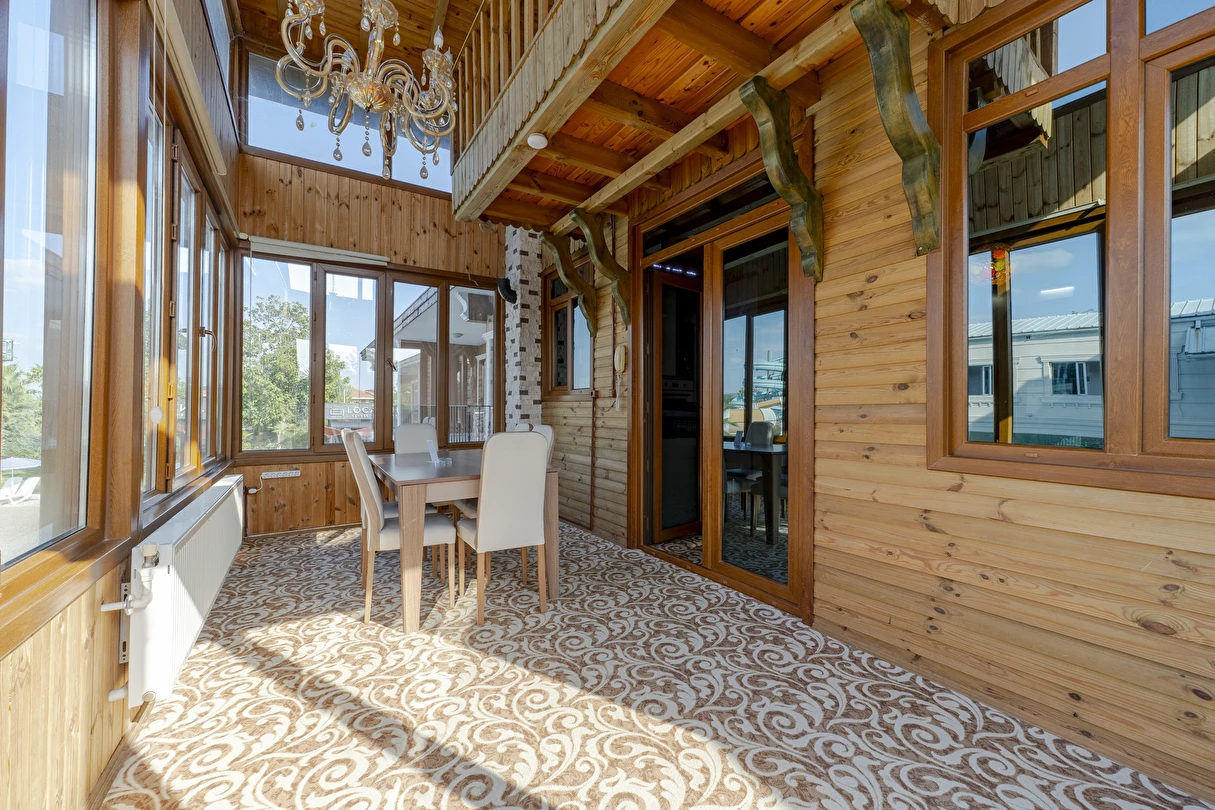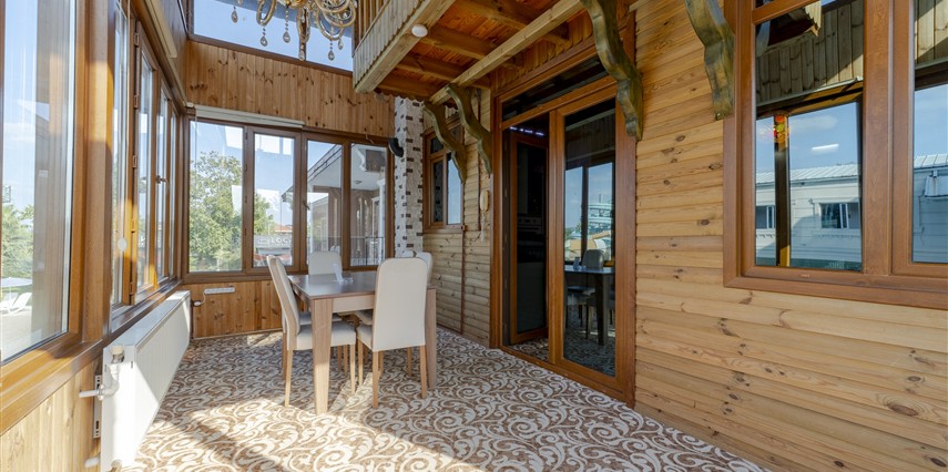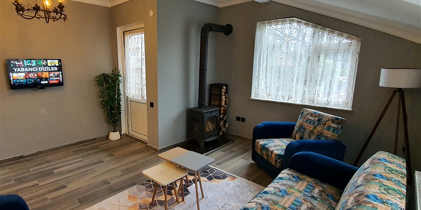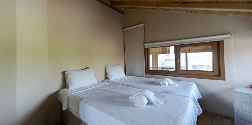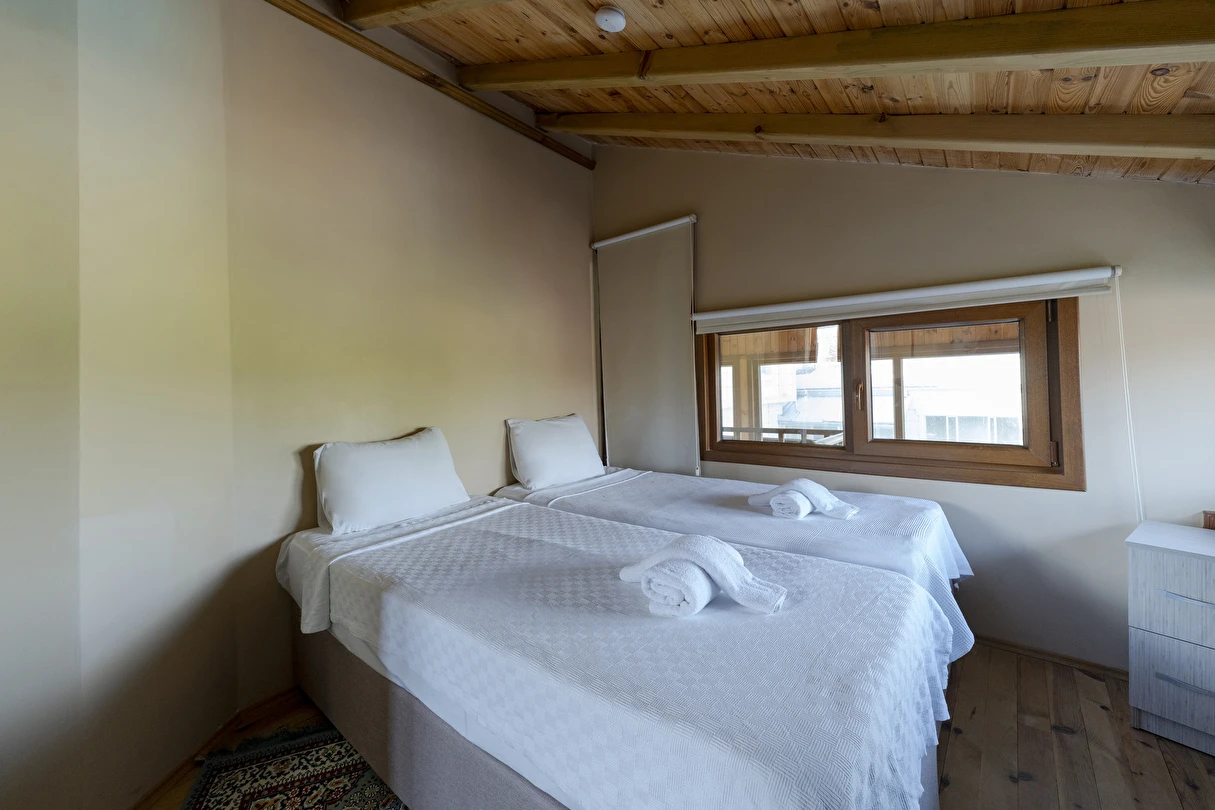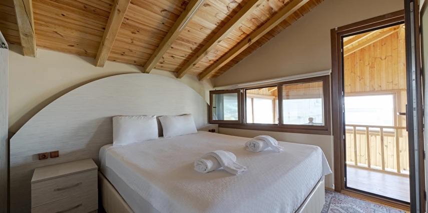 Wooden Villa: Villamız kalabalık aileler veya arkadaş gruplarına özel olarak hazırlanmıştır. 3 ayrı yatak odası mevcuttur. Odalara göre konaklama sayısı max. 6 kişi olarak yer almaktadır. Her katta banyosu ile konforlu ve hijyenik kullanım alanı sağlar. İçerisinde mutfak mevcut olup tüm ayrıntılar düşünülmüş sizlerin konaklamasına uygun şartlar haline getirilmiştir. Özel camekan teraslı balkonunda şömine keyfi yapacağınız bir alan oluşturulmuştur.
