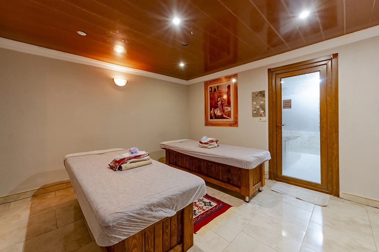 Yıkanmanın yanında iyi bir masaj için de en uygun ortamlar olan Türk Hamamlarının en seçkin örneklerinden birisini, Sapanca Aqua Wellness SPA Hotel & Aqua Park ’da bulabilirsiniz. Kolay ve hızlıca kullanabileceğiniz hamamımızın bünyesinde göbek taşı, 8 kurna, kuru sauna ve Fin saunası mevcuttur. Ayrıca, talebinize göre kese ve köpüklü masaj yapmak üzere profesyonel personelimiz, size hizmet vermek için hazırdır.