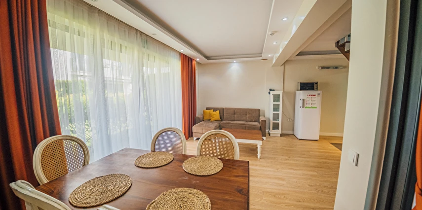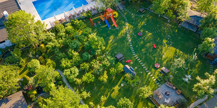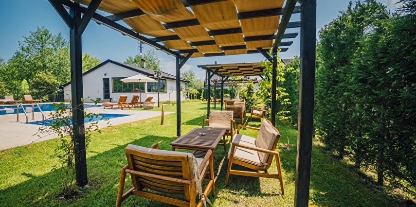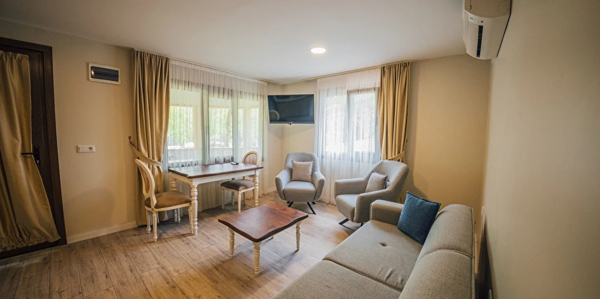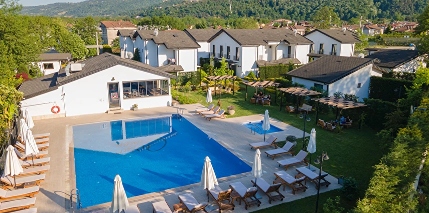 Daha Fazla GösterSapanca’nın Kırkpınar beldesinde konumlanan Sapanca Çayır Çimen Otel, doğanın ortasında, yeşillikler içindeki bahçesinde meyve ağaçları ve küçük kümes hayvanlarıyla doğa ile baş başa, dinlendirici ve huzurlu bir tatil imkanı sunuyor. Her villa, kendine ait veranda ve yeşil alana sahiptir. Tüm ihtiyaçlarınızı karşılayacak mutfak ekipmanları vardır. Havuzun gün boyu tadını çıkarabilir, huzur dolu doğanın sesini dinleyebilirsiniz. Dileyen verandasında mangal yapabileceği gibi ; önceden rezerve ederek, barbekü alanında mangal partisi de yapabilir. Sezona göre, hobi bahçesinden sebze veya kümesten taze yumurta alma şansınız da var. Ayrıca çocuklar için oyun alanı vardır.