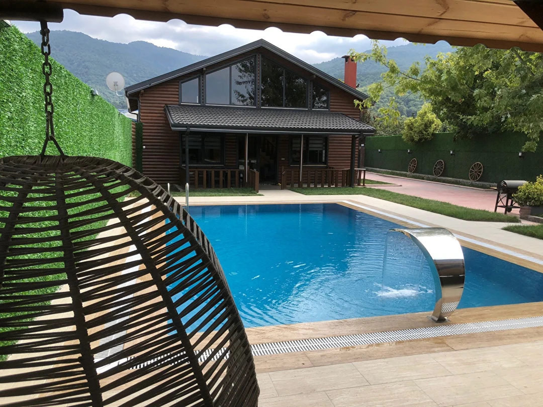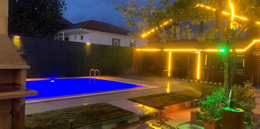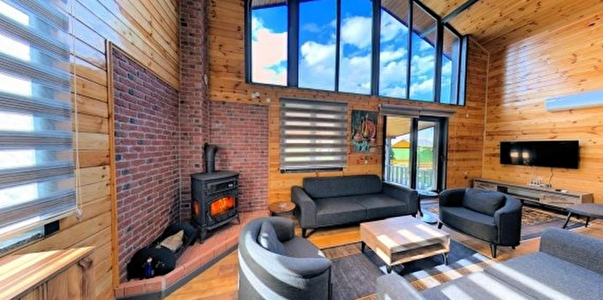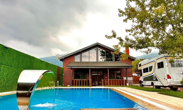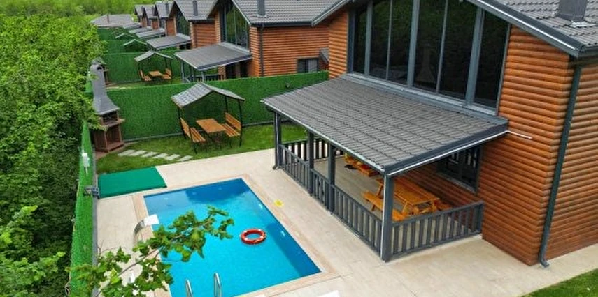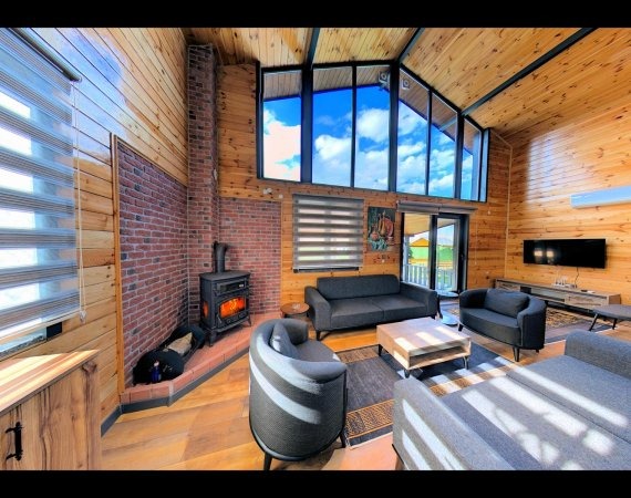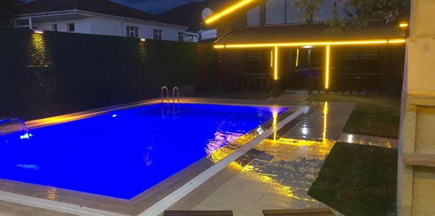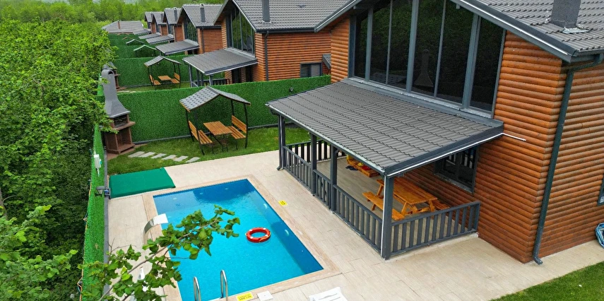 Isıtmalı özel havuz, jakuzi, şömine, barbekü alanı, bahçe sobası ve kamelya gibi ayrıcalıklı outdoor alanların yanı sıra; içeride yerden ısıtmalı, yüksek tavanlı ve ferah oturma alanı ile dört mevsim keyifli bir konaklama sunar.
