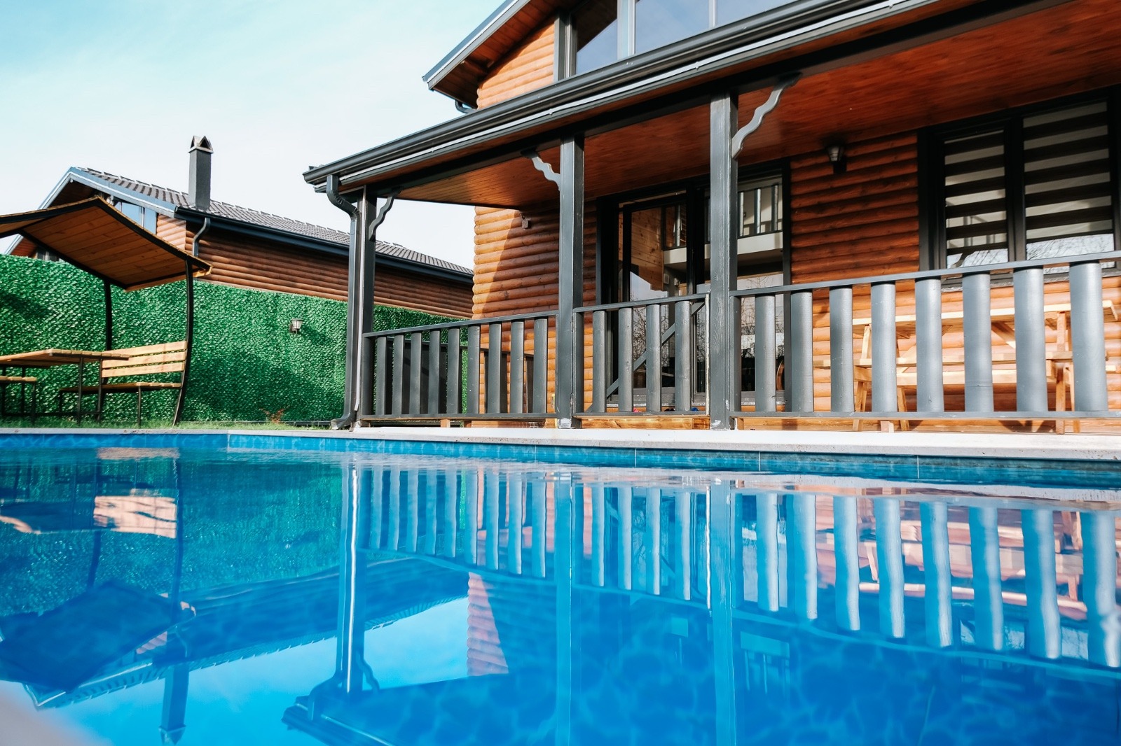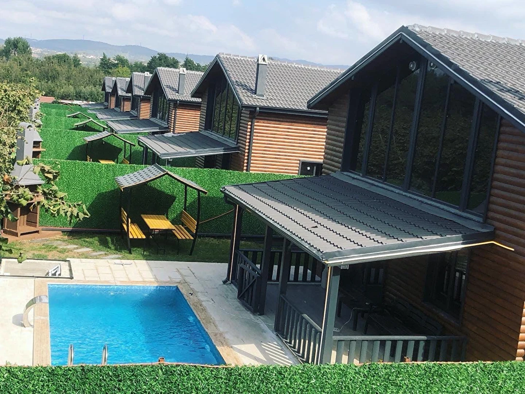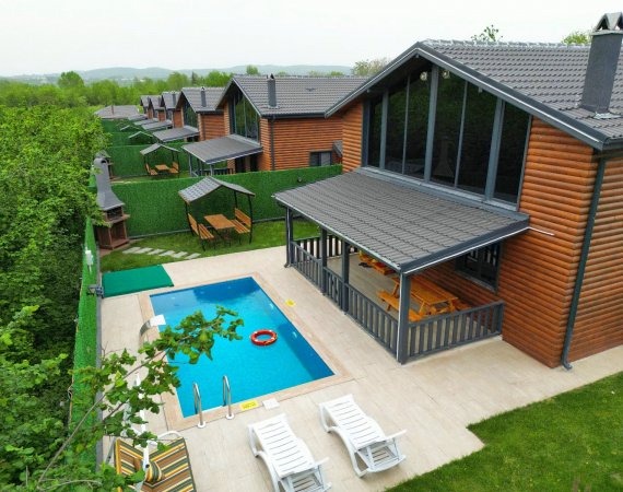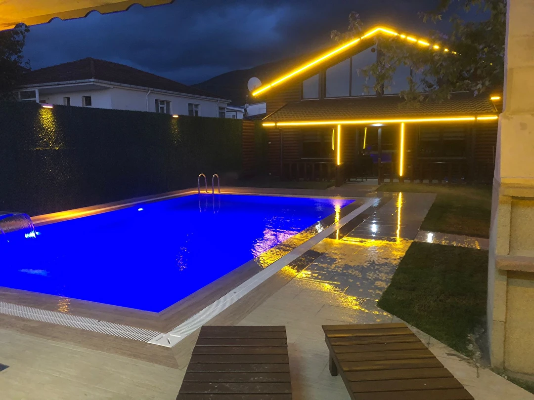 Isıtmalı özel havuz, jakuzi, şömine, barbekü alanı, bahçe sobası ve kamelya gibi ayrıcalıklı outdoor alanların yanı sıra; içeride yerden ısıtmalı, yüksek tavanlı ve ferah oturma alanı ile dört mevsim keyifli bir konaklama sunar.