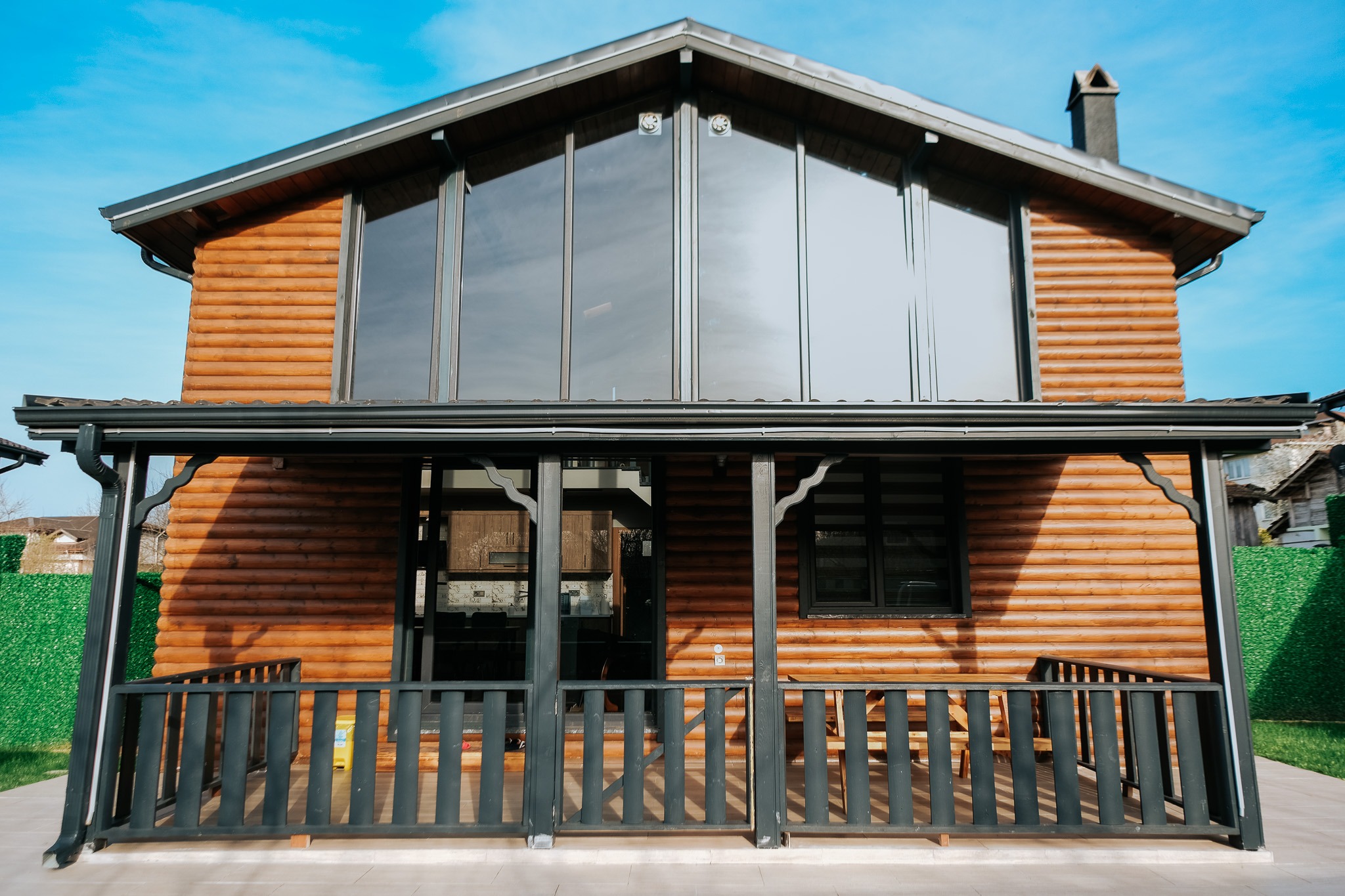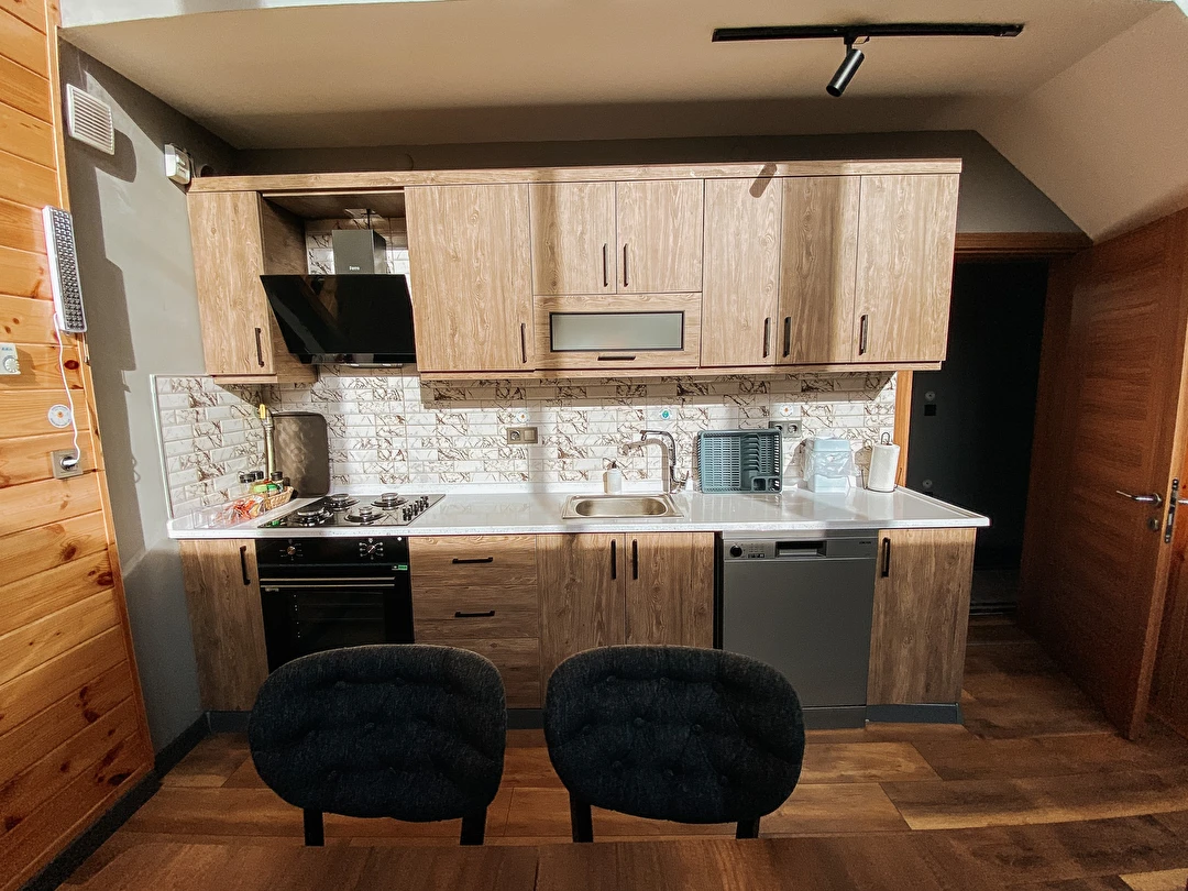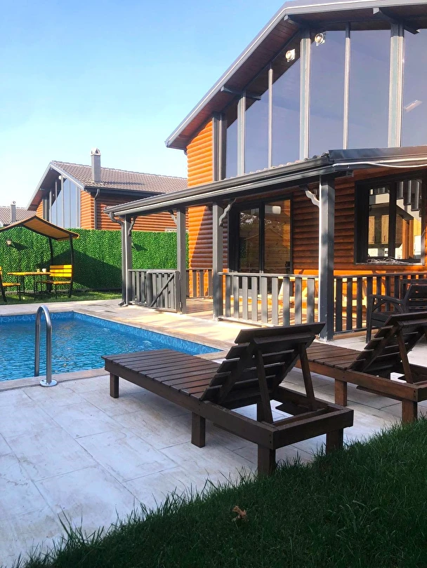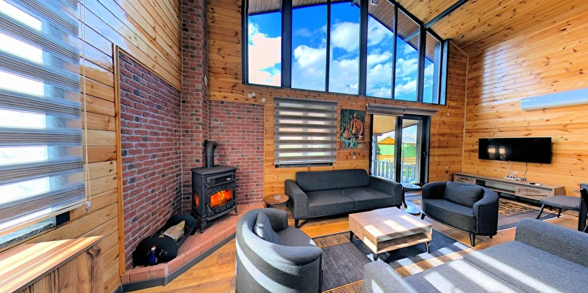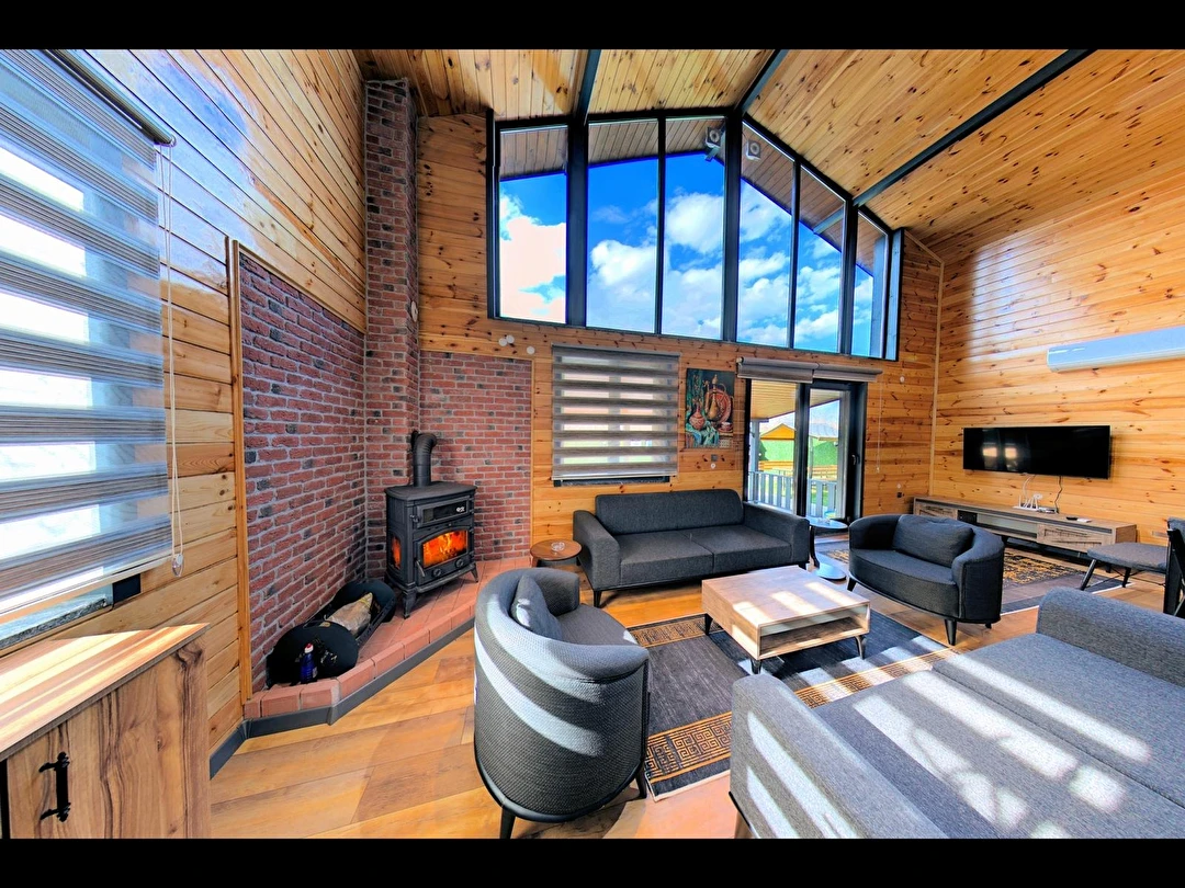 Villamızda 3 adet çift kişilik yatak bulunan, klimalı ve TV’li odalar yer almakta olup; yüksek tavanlı salonda çift kişilik yatak olabilen 2 kanepe ile birlikte 10 kişiye kadar konforlu konaklama imkânı sağlanmaktadır. Tam donanımlı mutfak ve jakuzili banyo, tüm ihtiyaçlarınızı karşılayacak şekilde dizayn edilmiştir. İçeriye adım attığınız anda hissedeceğiniz doğal ahşap dokusu, stres ve yorgunluğunuzu geride bırakmanızı sağlar.