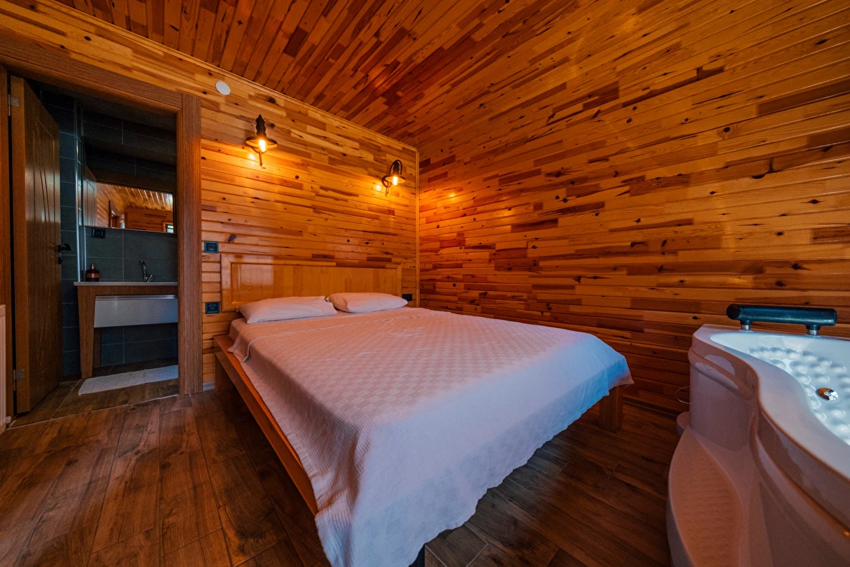 Her bungalovda yer alan özel sıcak havuz, sizi doğanın içinde dört mevsim tatil yapabilmenin ayrıcalığıyla buluşturuyor. Şömine keyfiyle kış aylarında sıcacık bir atmosfer, yaz aylarında ise serin doğa manzaraları eşliğinde unutulmaz anlar yaşayabilirsiniz. İlk odun şömine için ücretsiz olarak sunulmakta, sonraki talepler ise ücretlidir.