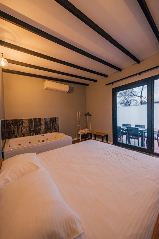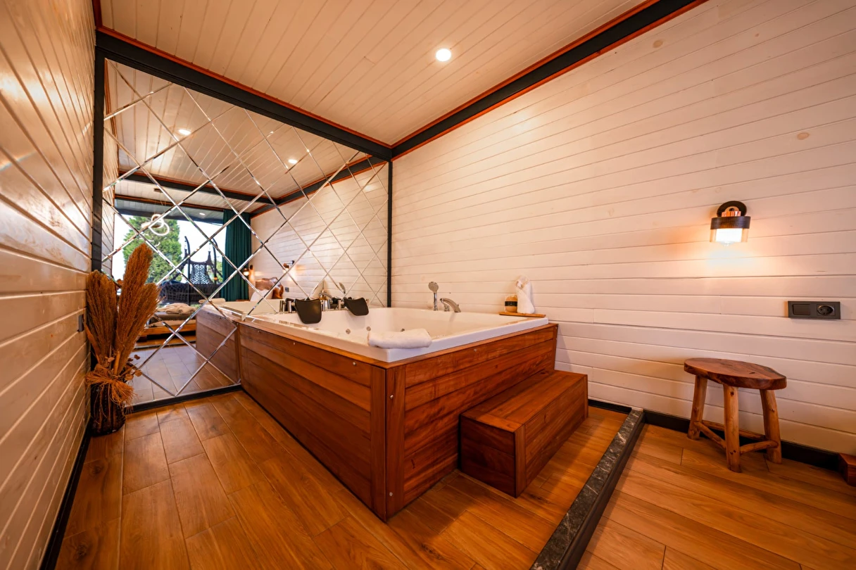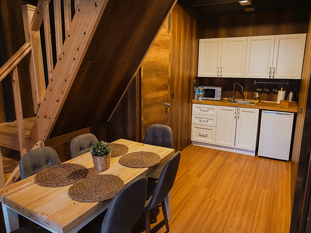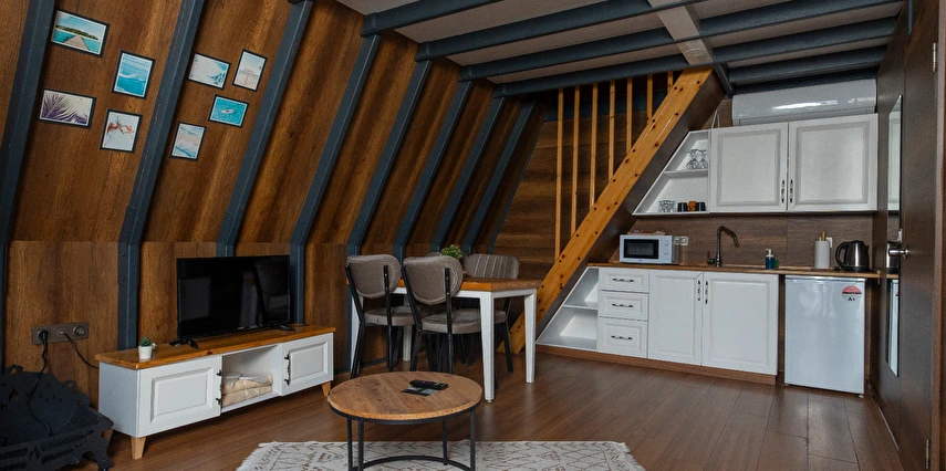 Daha Fazla GösterKişilere özel ev biçiminde tasarlanan Sapanca Kıyı Bungalov - Cafe, huzur dolu bir atmosfere sahip. Ortak kullanım alanlarının dışında doğal yapıya sahip ferah bungalov kısımlar, kişilerin özel ve sakin bir tatil geçirmesine olanak veriyor. Bireysel olarak gelip kafa dinleyebileceğiniz bu işletmeye grup halinde veya aile bireylerinizle de gelme imkânınız bulunuyor.