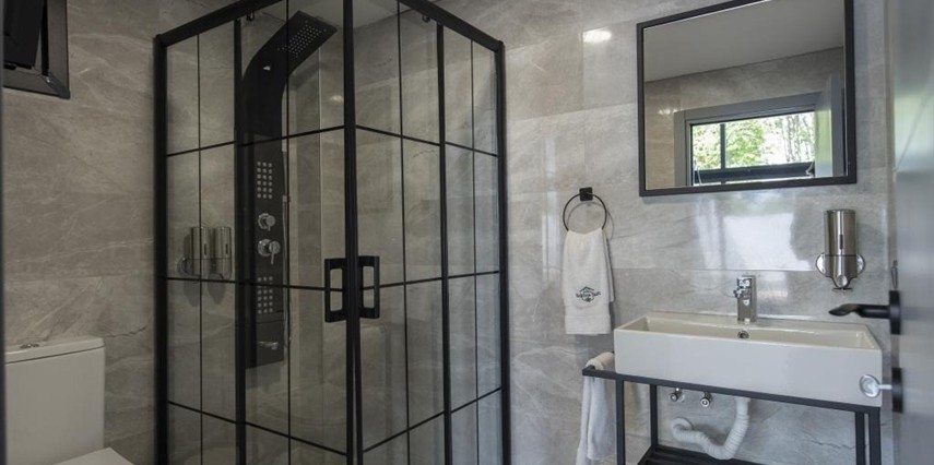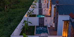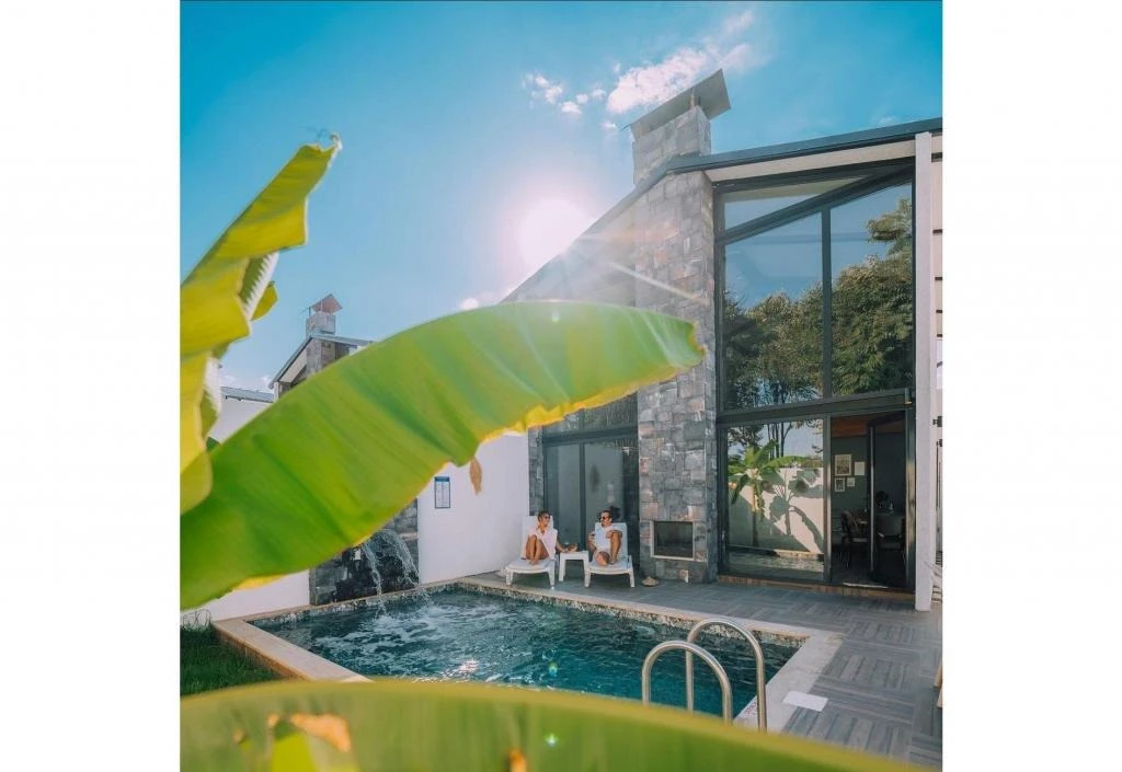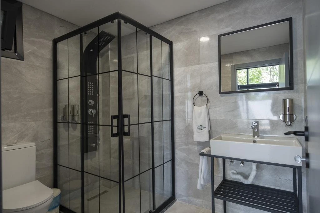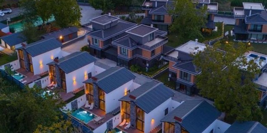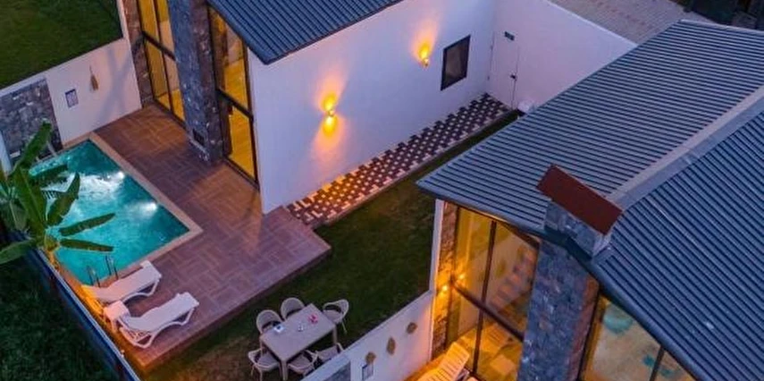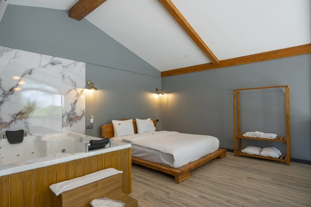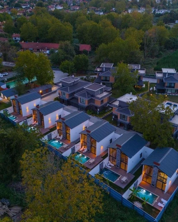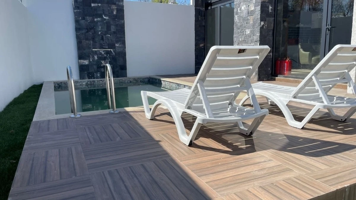 Daha Fazla Göster Müstakil ısıtmalı havuz (33-34 Derece) ve jakuzili, dışarıdan görünmeyen özel bir bungalovdur.