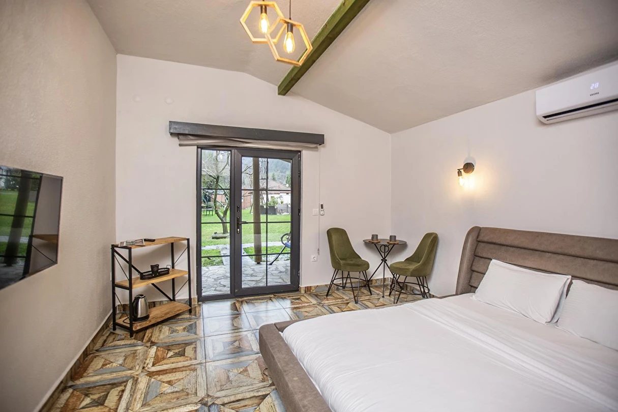 Daha Fazla GösterSapanca Mini House aile ya da arkadaşlarınızla konaklayabileceğiniz standart ve delüks odaları ile hizmet vermektedir. Tüm odalarda Wi-Fi, klima, yerden ısıtma bulunmaktadır. Konforlu ve kaliteli döşenmiş, hayal ettiğiniz gibi bir yerde konaklarken doğanın içinde huzur bulacaksınız.