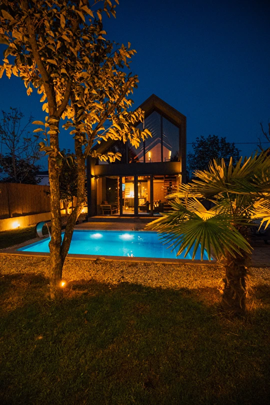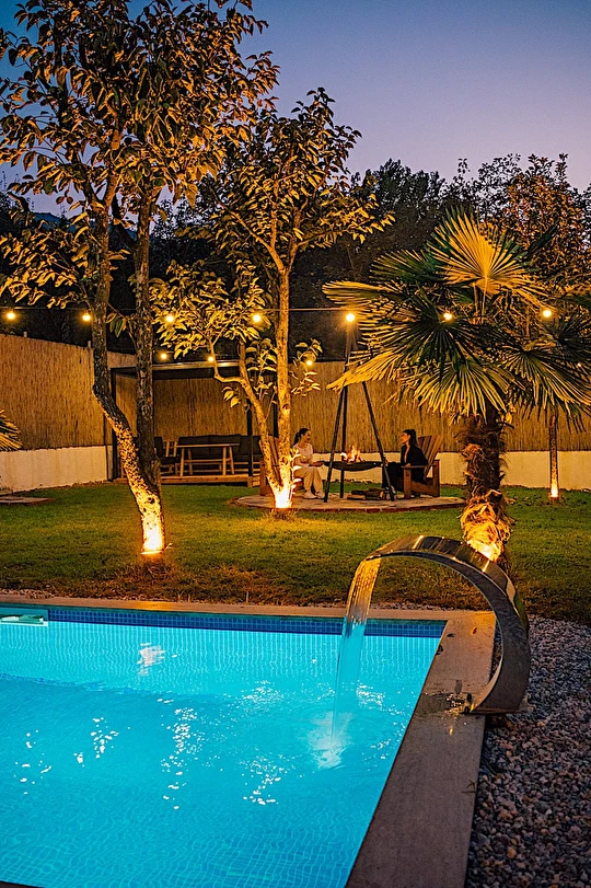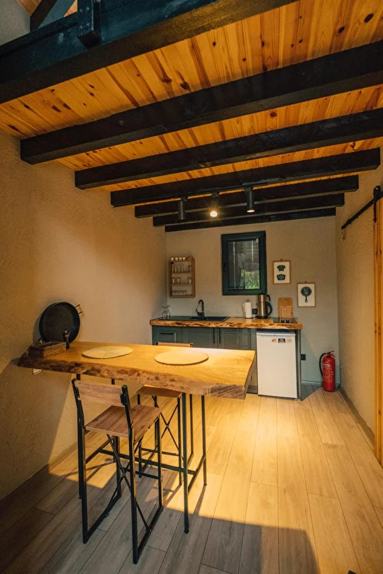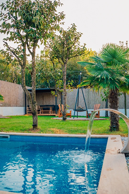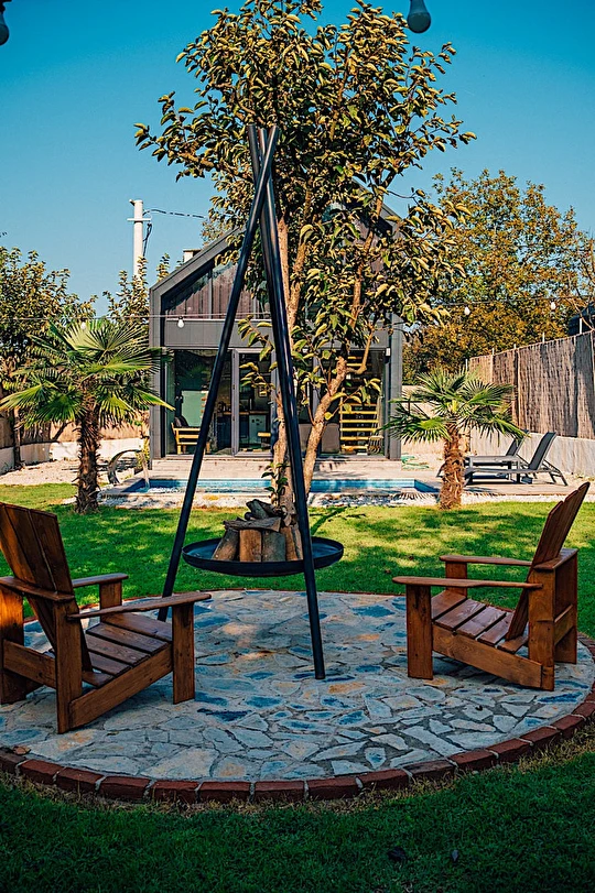 Daha Fazla GösterSapanca Kurtköy'de bulunan muhteşem tesisimizle karşınızdayız. Sizleri ilk olarak doğa ile iç içe olan geniş ve müstakil bahçemiz karşılamaktadır. Mimarisi ile bizleri büyüleyen evimizin giriş katında şöminemiz, oturma grubumuz ve akıllı televizyonumuz bulunmaktadır. Tam donanımlı mutfağımızın bulunduğu evimizin üst katında ise yatak odamız ve yatak odamızdan evimizin camına doğru uzanan iskele koridorumuz bizi karşılamaktadır. Camımızın kenarında manzaraya eşlik edebilmeniz için oturma grubumuz ve fileden oluşan özel dinlenme / sohbet alanımız oluşmaktadır. Sıcak havuzumuzun bulunduğu bahçemizde sizler için meyve ağaçları ve bahçe mobilyalarımız bulunmaktadır.