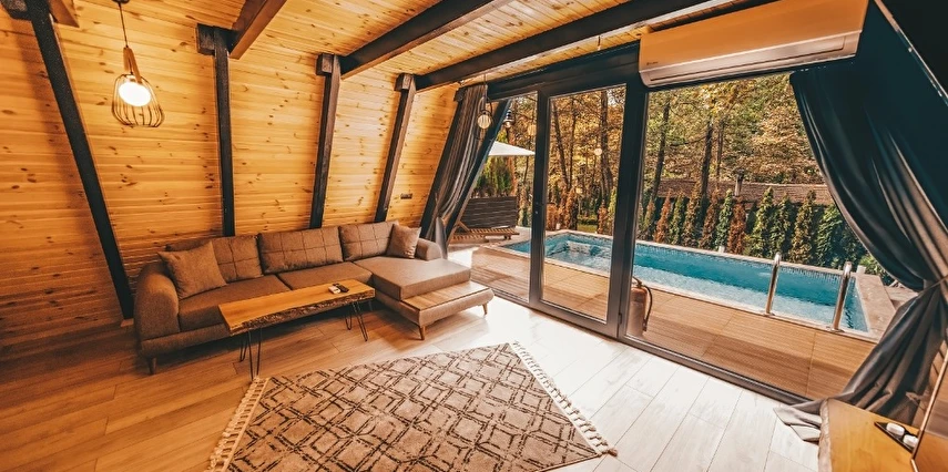 Tamamen doğayla uyumlu tasarlanan bungalovlarımız, hem modern hem de sıcak bir atmosfer sunuyor. Ahşap dokunun verdiği huzur, geniş cam pencerelerden içeri süzülen gün ışığı ve yemyeşil bahçeler, misafirlerimize eşsiz bir konaklama imkânı sağlıyor.