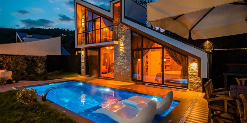Bungalovlarımız; 2 çift yataklı yatak odası, jakuzisi, tam donanımlı bir mutfağı, şömineli ve yerden ısıtmalı oturma ve yemek alanı, bahçesinde barbeküsü, oturma alanlı ateş çukuru ve ısıtmalı havuzu ile misafirlerine kendi evlerindeki konforu sağlamaktadır.