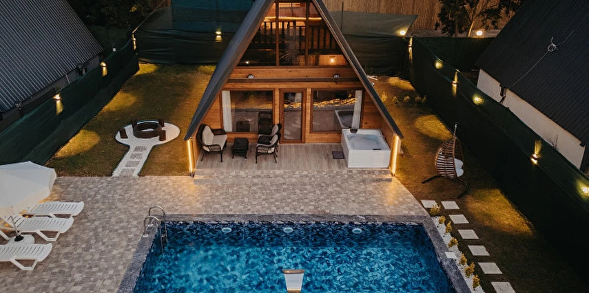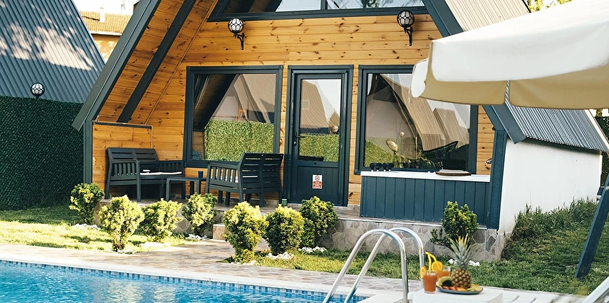 Daha Fazla GösterSapanca Özfer Bungalov, doğanın kalbinde huzur dolu bir konaklama deneyimi sunuyor. Sapanca Gölü’ne yakın konumuyla öne çıkan tesis, ahşap mimarisi, özel havuzu ve jakuzili odalarıyla misafirlerine konfor ve mahremiyeti bir arada sunuyor. Doğa ile iç içe, sakin ve romantik bir tatil arayanlar için ideal bir kaçış noktası olan Özfer Bungalov, her mevsim unutulmaz anılar biriktirmeniz için sizi bekliyor.