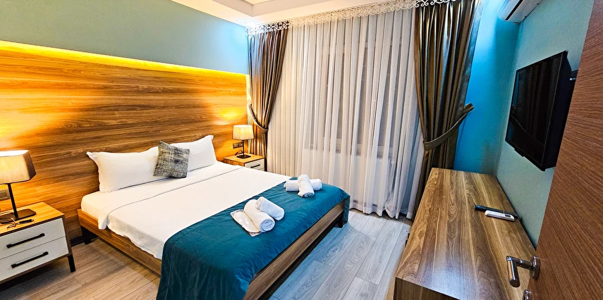 Temizliği ve bahçe manzarasıyla ön plana çıkan 32 standart oda ve 6 süit oda olmak üzere toplam 38 odası bulunmaktadır. Odalar engelli bireylerin kullanımına da uygundur.