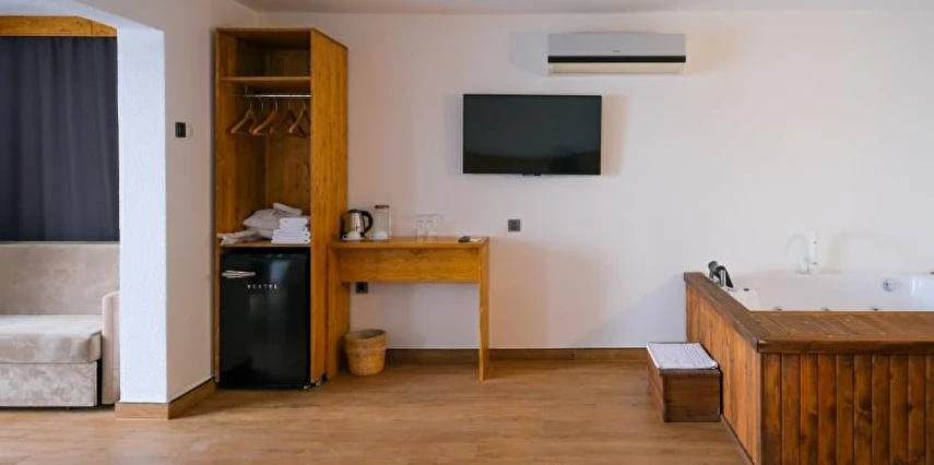 Daha Fazla GösterTesisin ortak havuzu bulunmamaktadır. Sadece iki odanın havuz bağlantısı vardır. Bu havuzu ''Ortak Havuzlu'' odadan alan misafirler kullanabilir. Sapanca Villa Suite Butik Otel ve Restoran 2015 yılında küçük bir aile işletmesi olarak misafirlerini ağırlamaya başladı. Sapanca'nın en etkileyici göl ve dağ manzarasına uyanabileceğiniz temiz ve rahat odalarımızın keyfini, otelimizin dinlendirici atmosferinde sevdiklerinizle birlikte çıkarın.