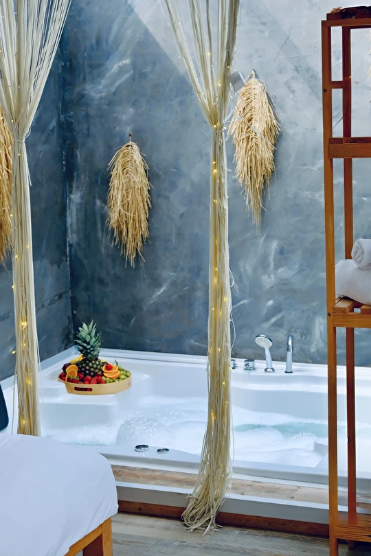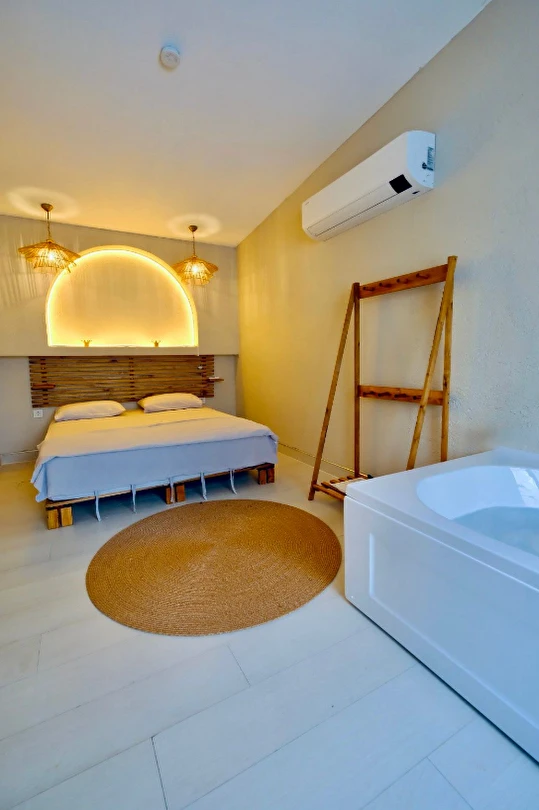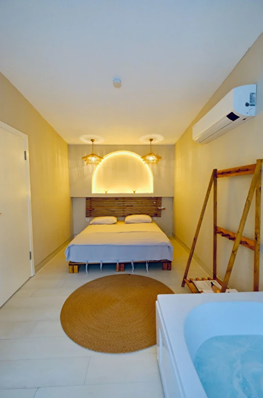 45 m² genişliğindeki Wellness Bungalovlarımız, rahat yaşam alanı ve modern tasarımıyla öne çıkar. Odalarımızda sigara içilmez, maksimum 4 kişi kapasitesi ile 2 yetişkin ve 2 çocuk için uygundur. Wellness dokunuşlarıyla dolu bu bungalovlar, hem dinlenme hem de eğlence için mükemmeldir.