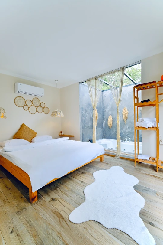 Doğayla iç içe tasarlanmış Aura Bungalovlarımız, temiz ve huzurlu bir ortam sunar. Odalarımızda sigara içilmez ve maksimum 4 kişi kapasitesi ile 2 yetişkin ve 2 çocuk için idealdir. Sakin ve ferah atmosferiyle tatilinizi keyifli hâle getirir.