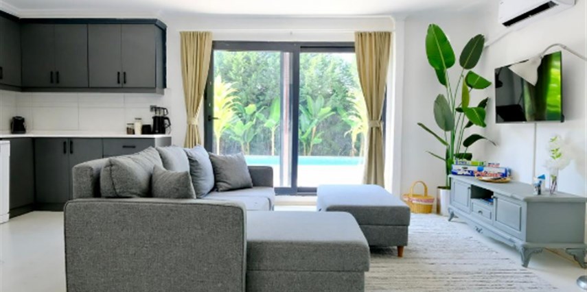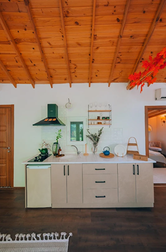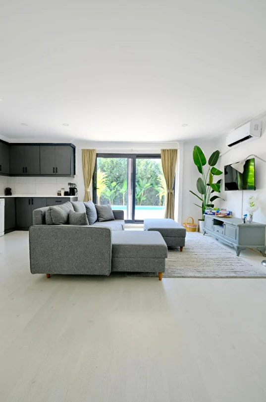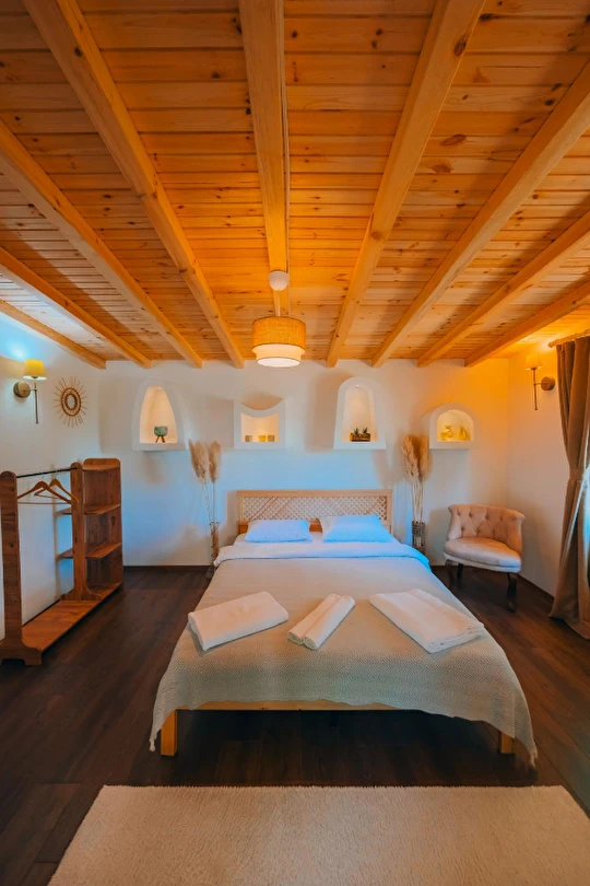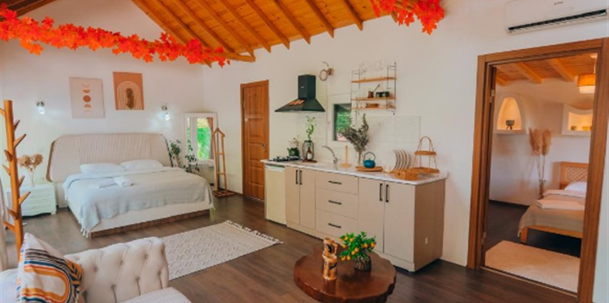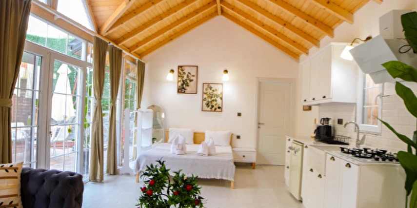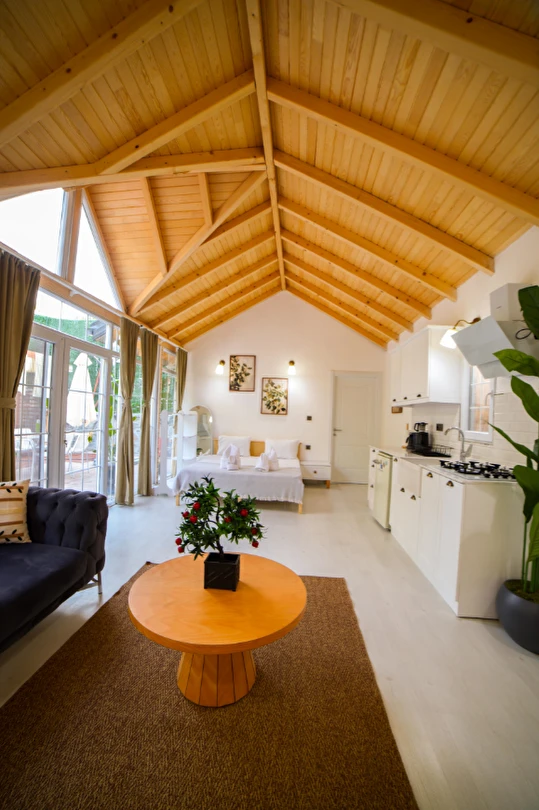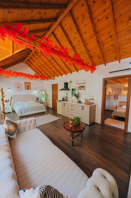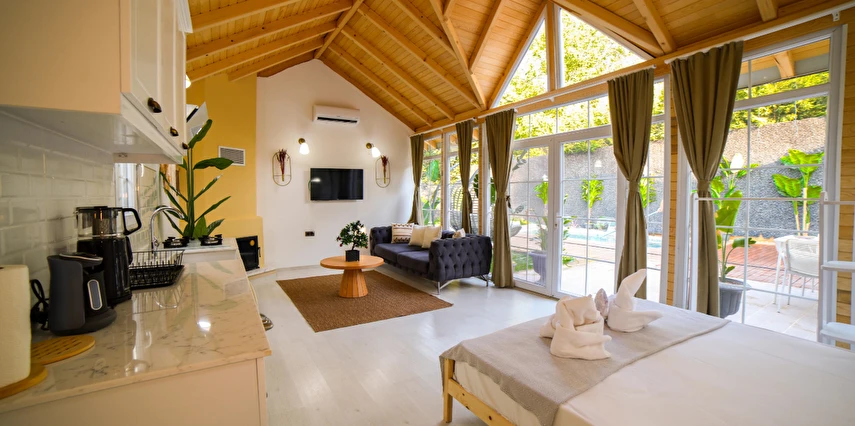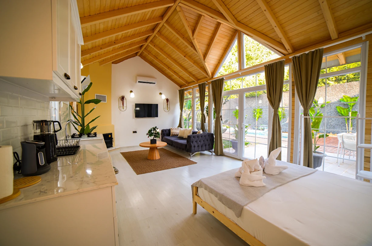 30 m² büyüklüğündeki Deluxe 2 odalarımız, maksimum 4 kişi kapasitesi ile küçük aileler ve çiftler için uygundur. Modern tasarımı ve rahat yaşam alanı ile sıcak ve samimi bir konaklama sunar.