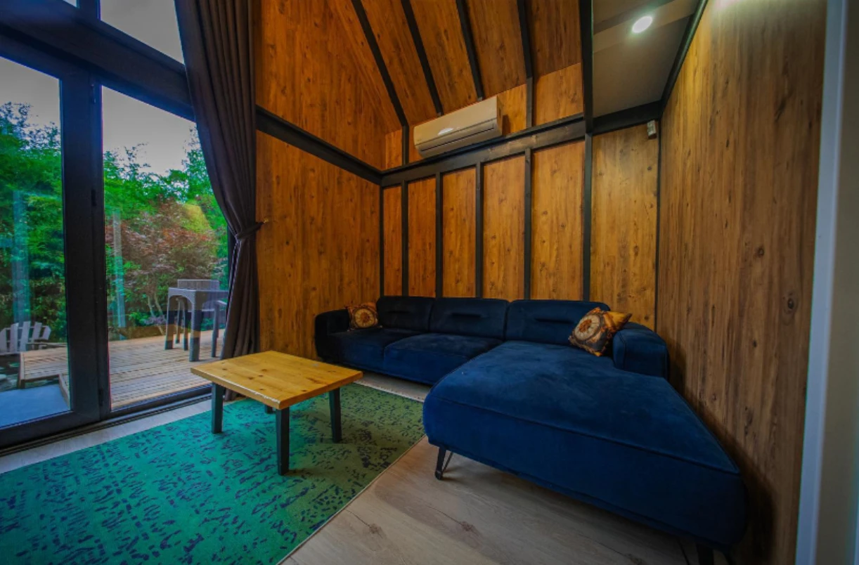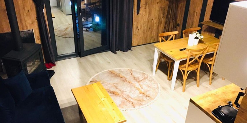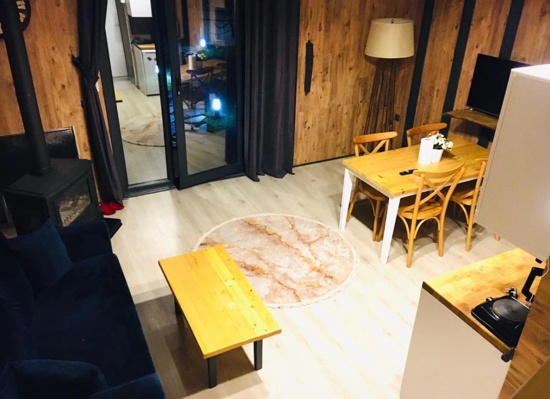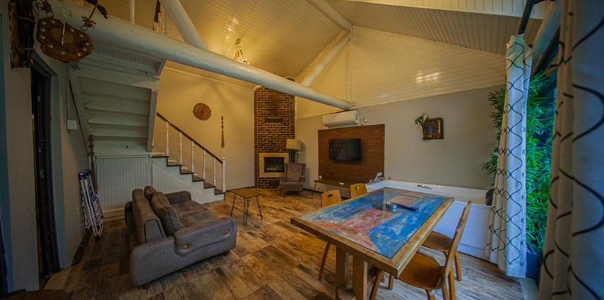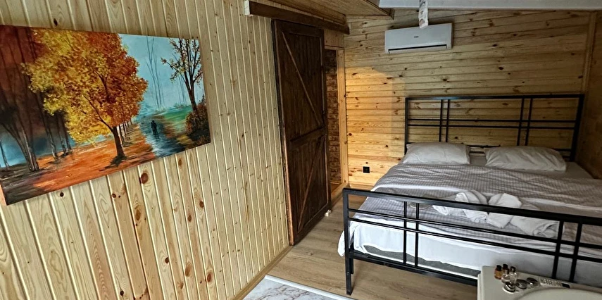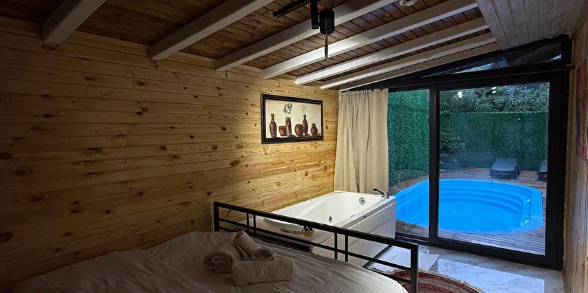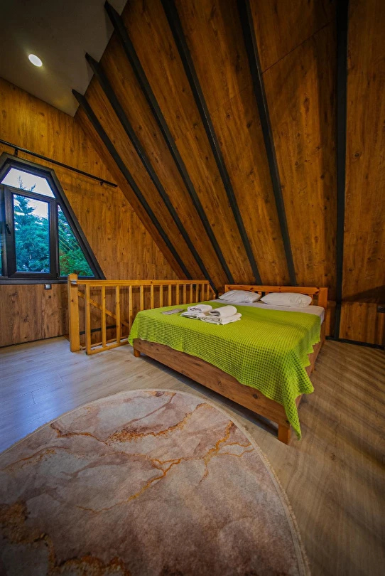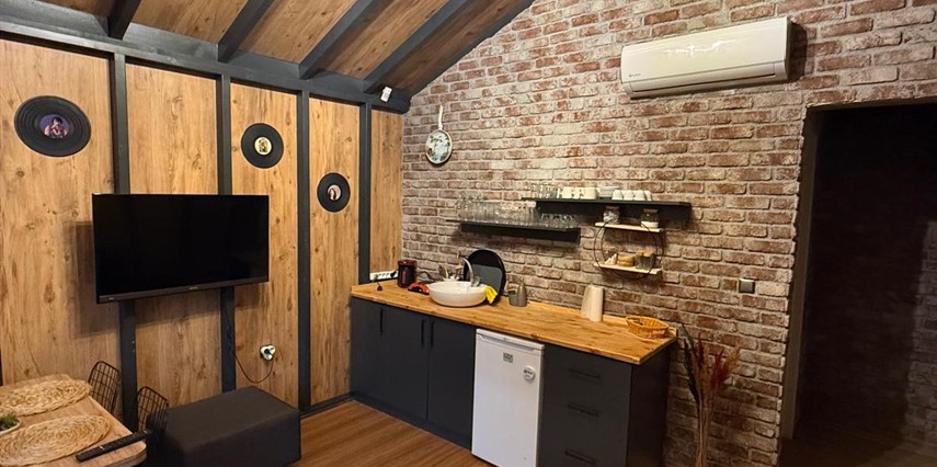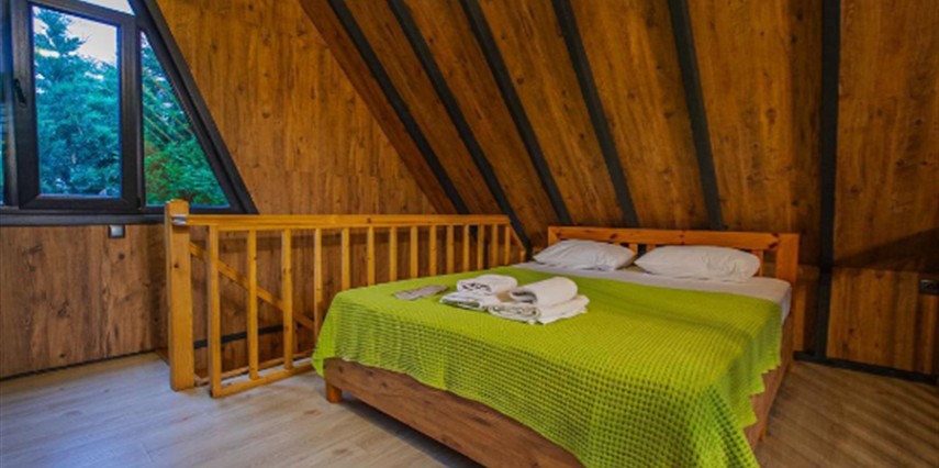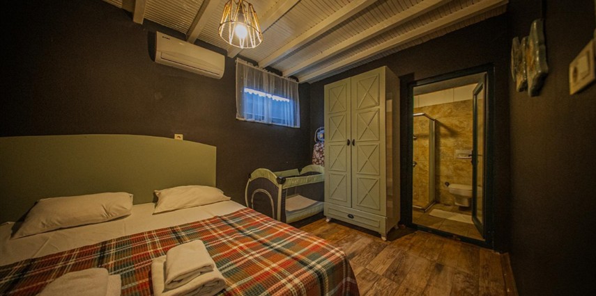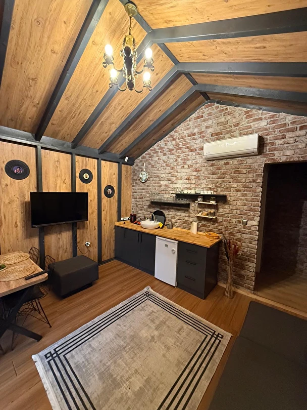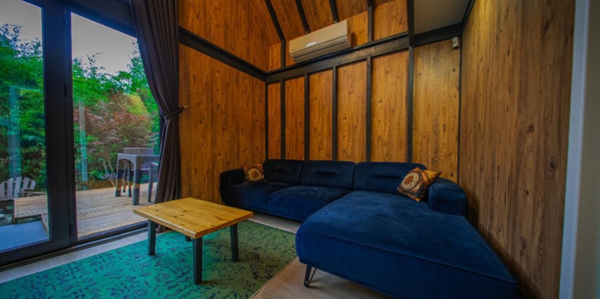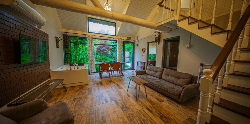 No:2 Bungalov: 75 m² genişliğiyle en büyük odamızdır ve 8 yetişkin ile 2 çocuk kapasitesiyle kalabalık gruplar için idealdir.