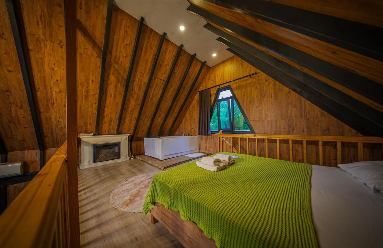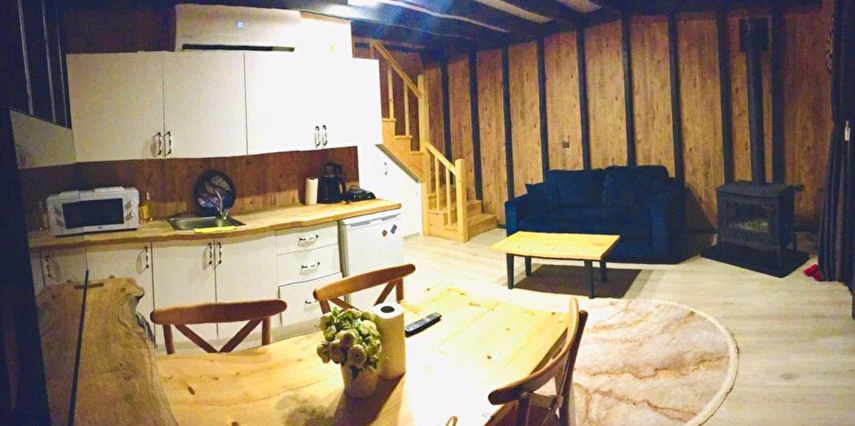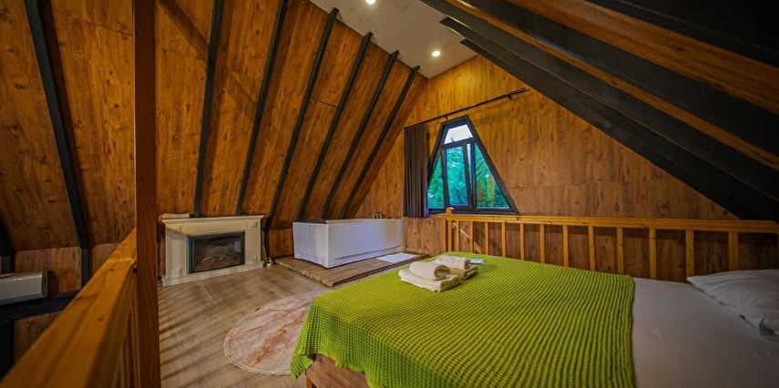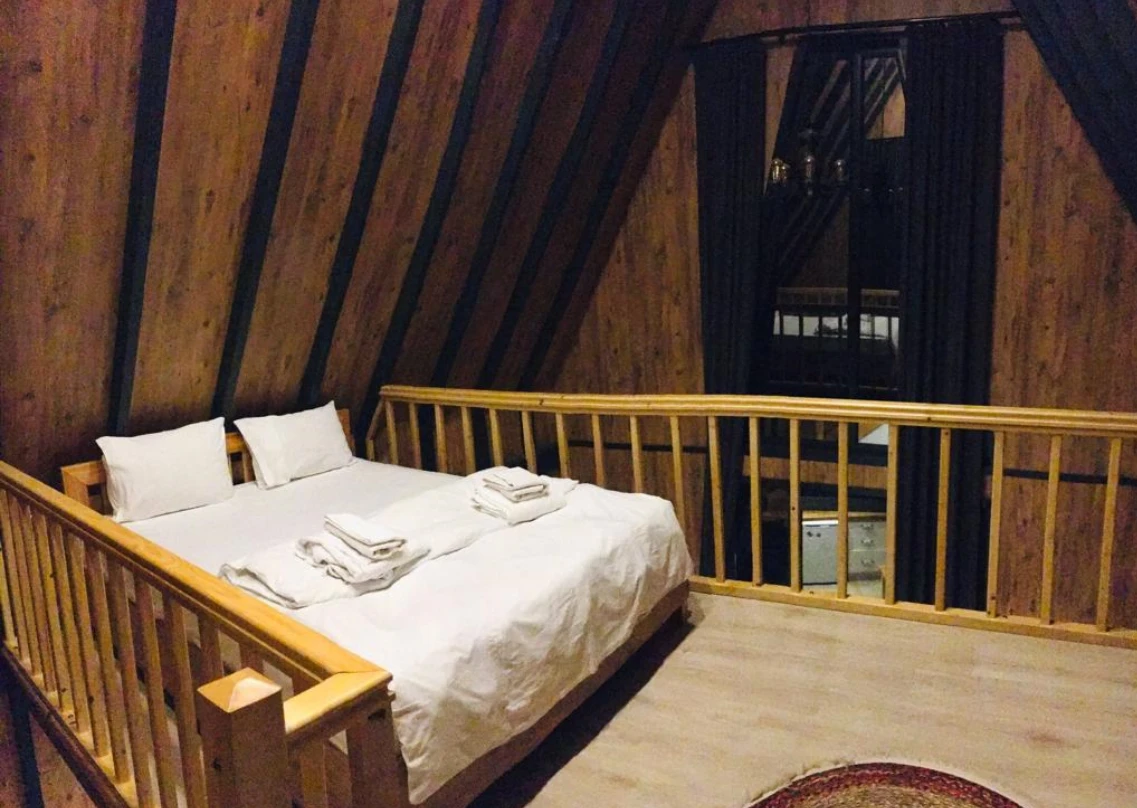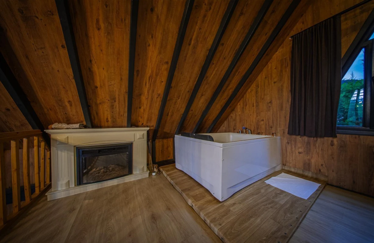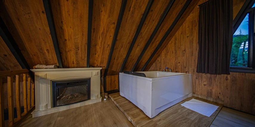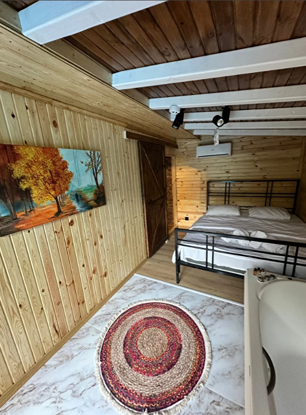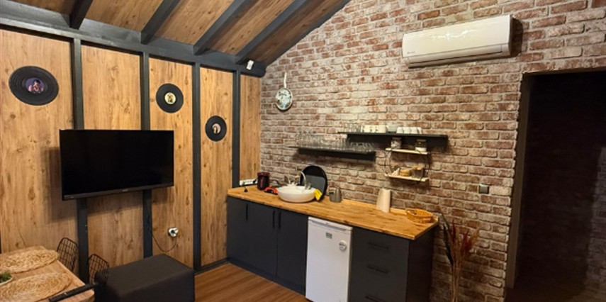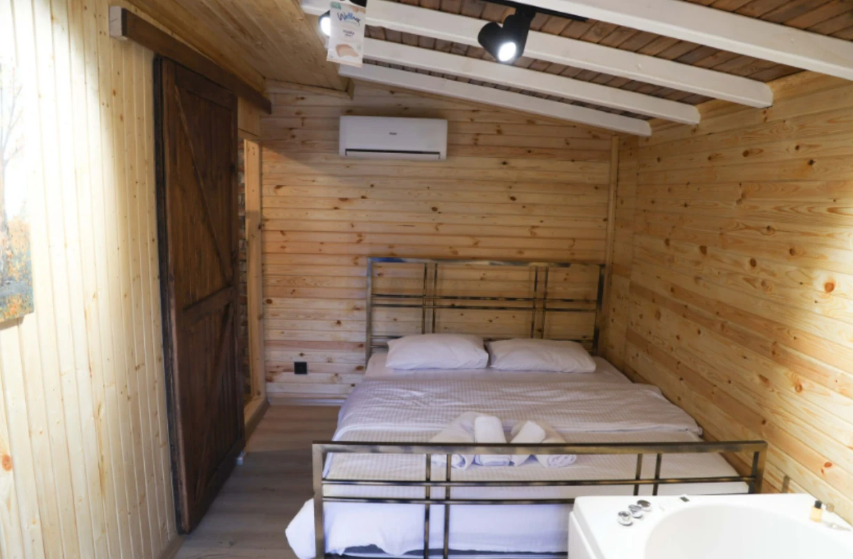 No:2 Bungalov: 75 m² genişliğiyle en büyük odamızdır ve 8 yetişkin ile 2 çocuk kapasitesiyle kalabalık gruplar için idealdir.